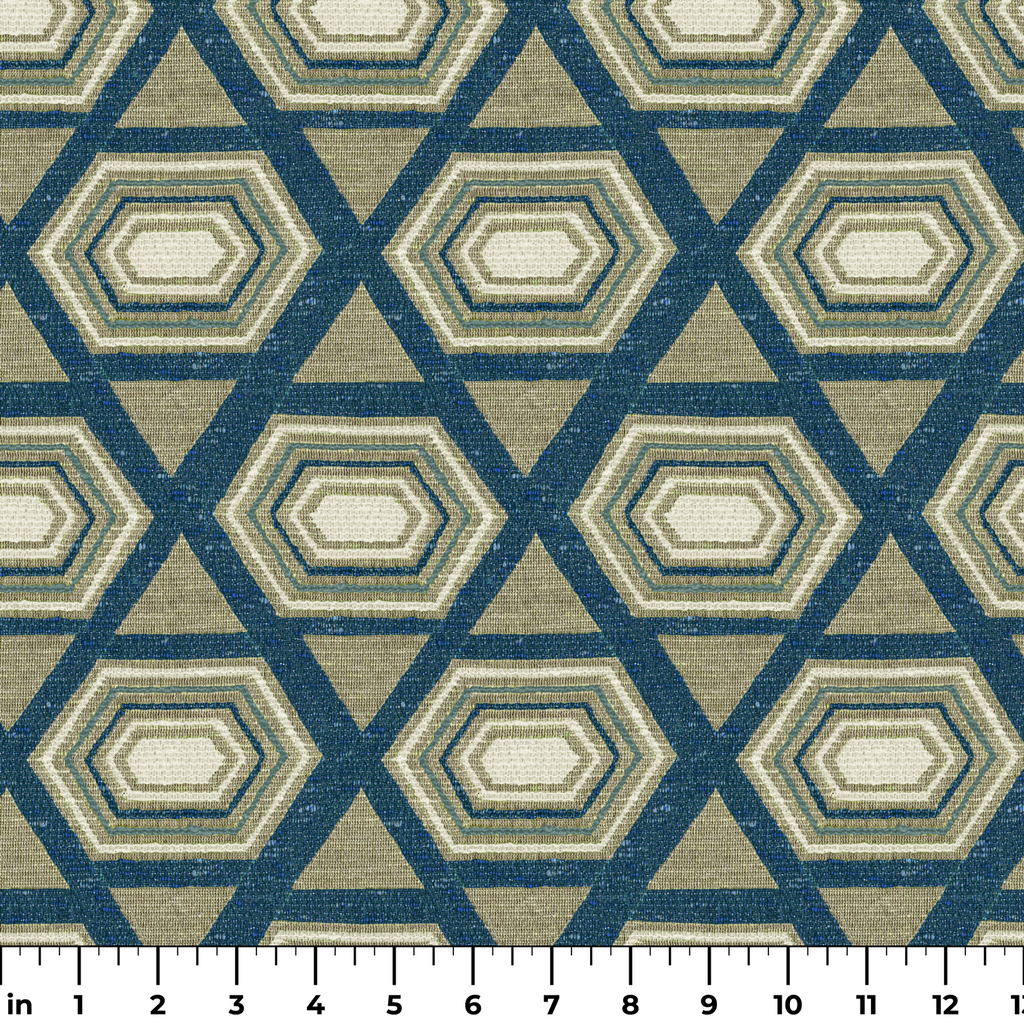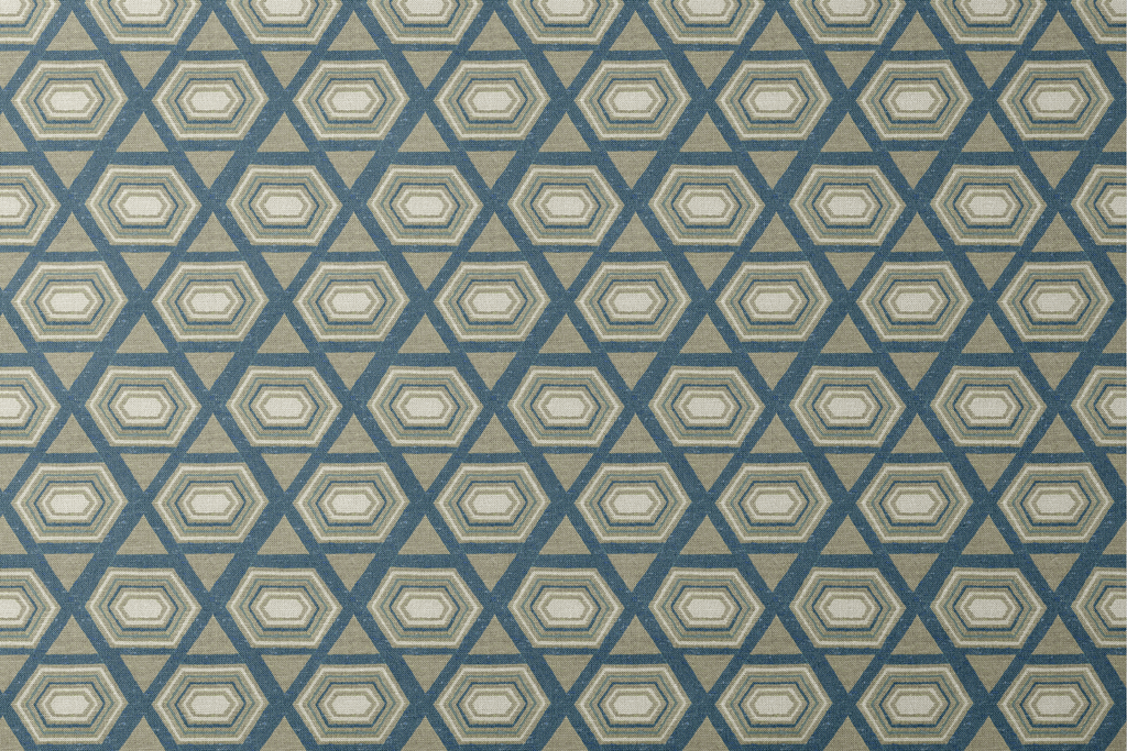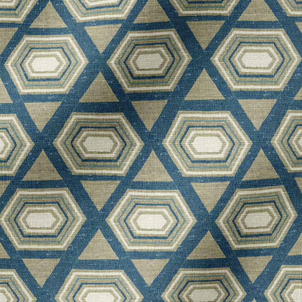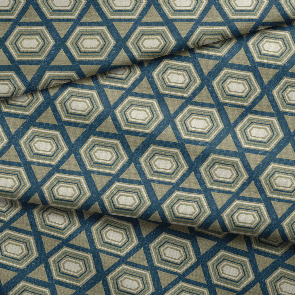 Stylish geometric pattern featuring concentric hexagons in blue and sage green tones, perfect for contemporary touch of mid-century sophistication for any space.