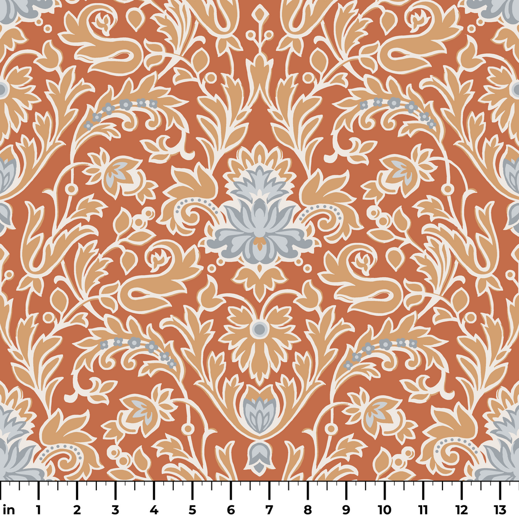 An intricate floral design featuring graceful scrollwork and stylized blooms. Rich with intricate detail, this pattern blends artisan craftsmanship with a refined, traditional aesthetic.