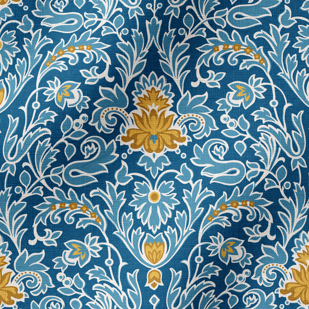 An intricate floral design featuring graceful scrollwork and stylized blooms. Rich with intricate detail, this pattern blends artisan craftsmanship with a refined, traditional aesthetic.