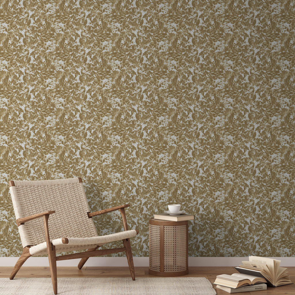Elegant gold and cream organic texture with splashes of metallic finish creates a sophisticated marbled effect perfect for luxurious home decor.