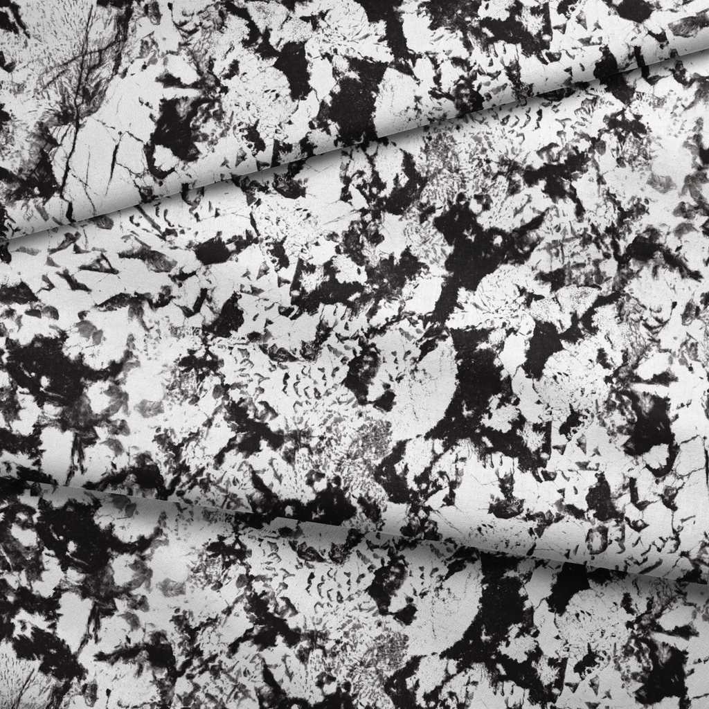 Elegant black and white organic texture with splashes of metallic finish creates a sophisticated marbled effect perfect for luxurious home decor.