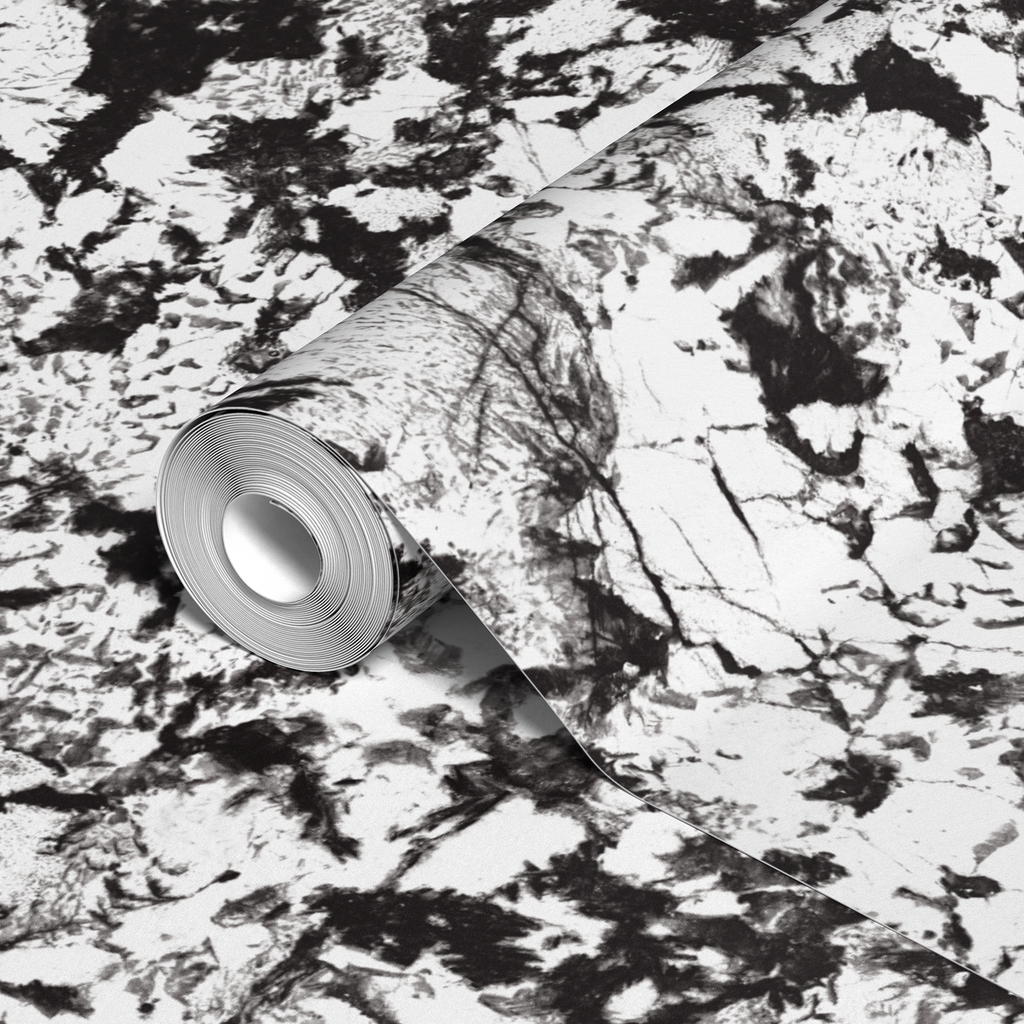 Elegant black and white organic texture with splashes of metallic finish creates a sophisticated marbled effect perfect for luxurious home decor.