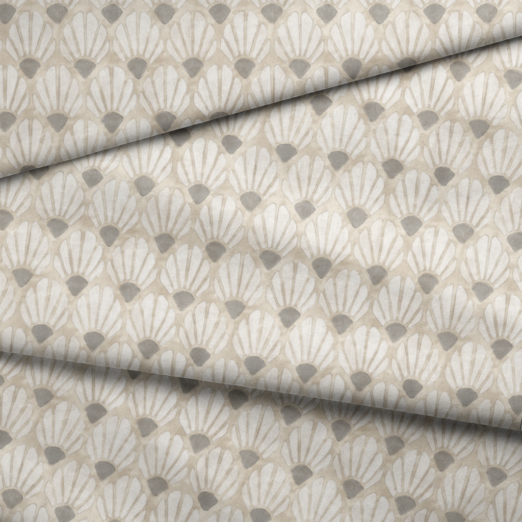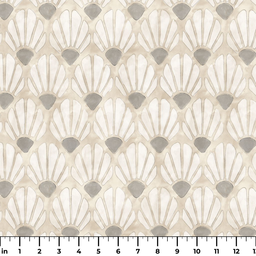 Elegant Art Deco fan pattern in soft neutrals creates a sophisticated geometric motif with subtle gray and cream tones, perfect for contemporary home decor or upholstery.