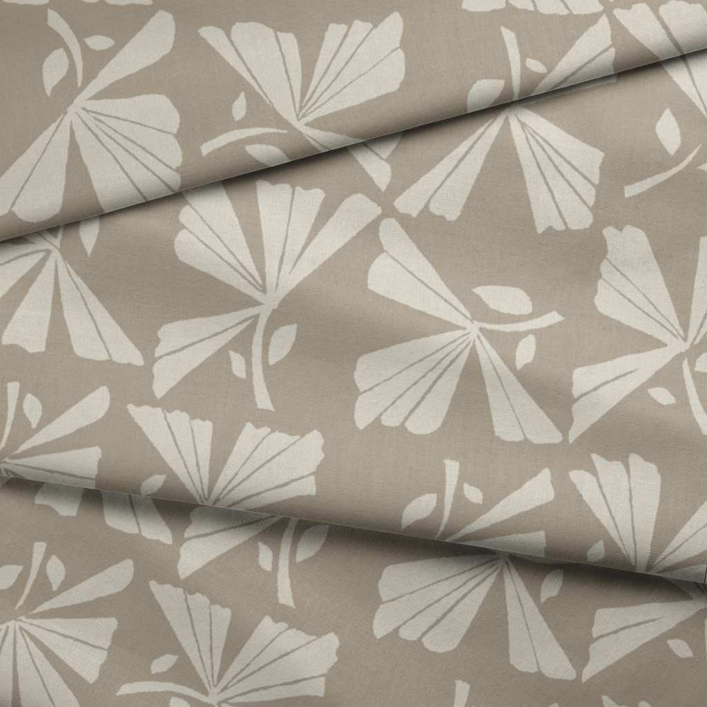 Elegant fan-shaped motif in a neutral beige colorway creates a timeless geometric pattern with organic flowing lines, perfect for sophisticated home decor applications.