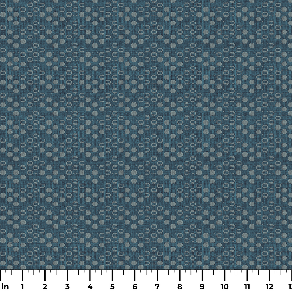 Sophisticated geometric upholstery fabric in blue and white tones with a contemporary square pattern, perfect for modern home decor and statement furniture pieces.