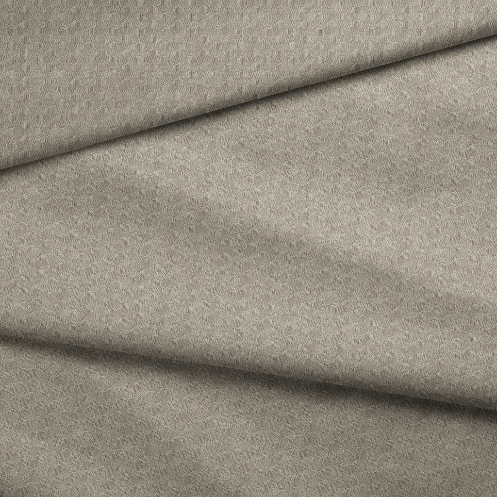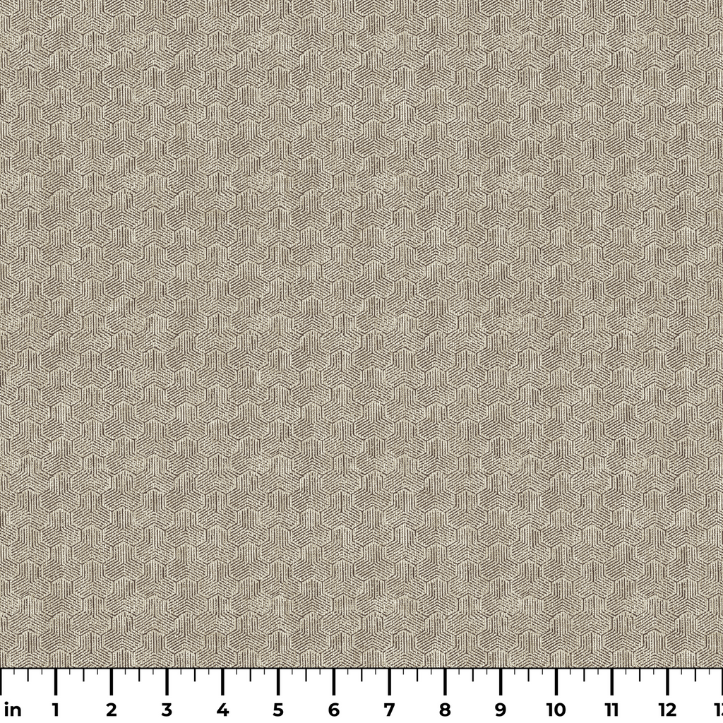 Elegant neutral geometric pattern featuring interlocking hexagons and linear details in a soft taupe colorway. Perfect for sophisticated spaces with a contemporary yet timeless appeal.