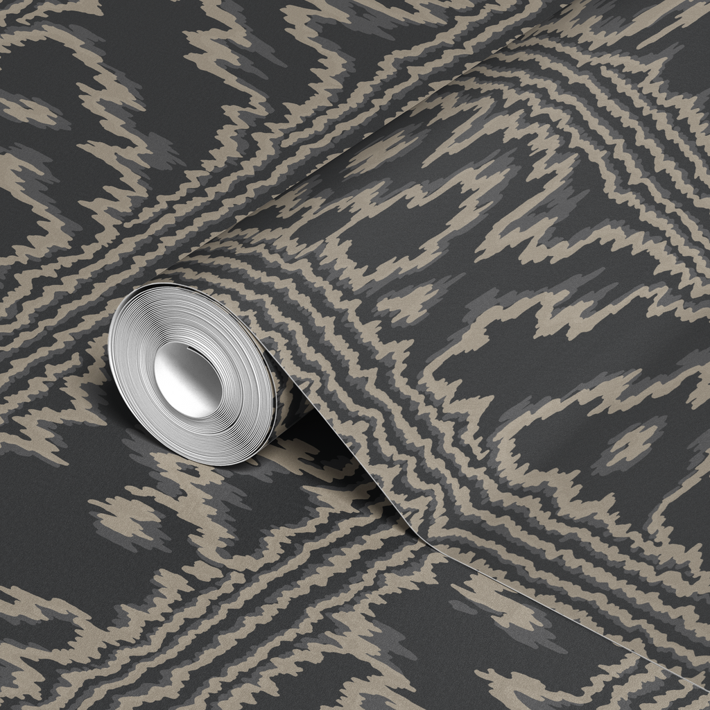 Striking ikat pattern in black and beige offers an elegant tribal-inspired look. This contemporary design brings bohemian texture to your home decor with its traditional geometric motif.