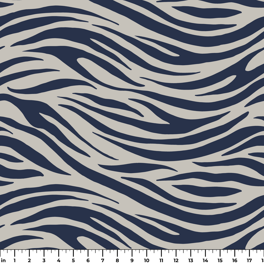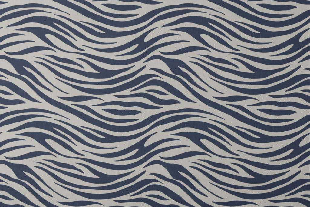 Contemporary navy and cream zebra-inspired pattern featuring flowing organic shapes and curved lines, creating a modern take on classic animal print with a sophisticated, abstract aesthetic.