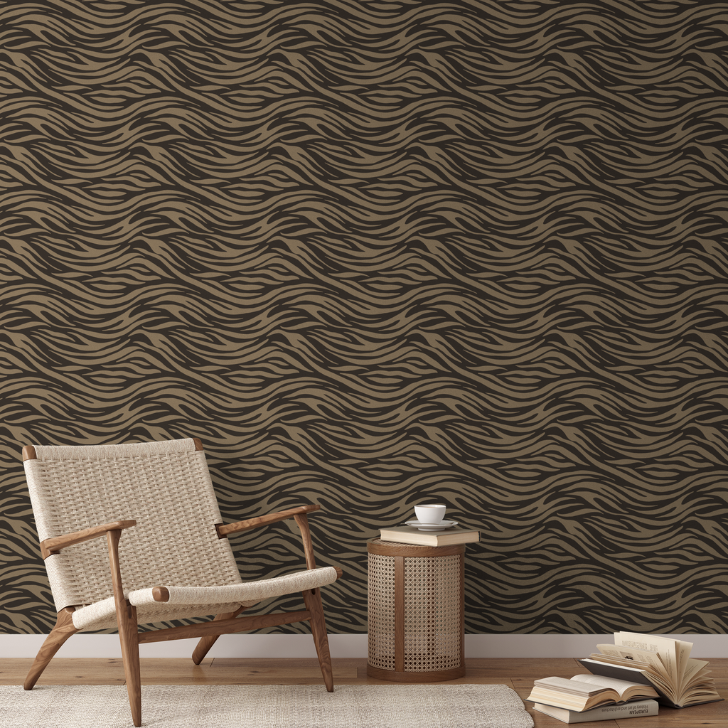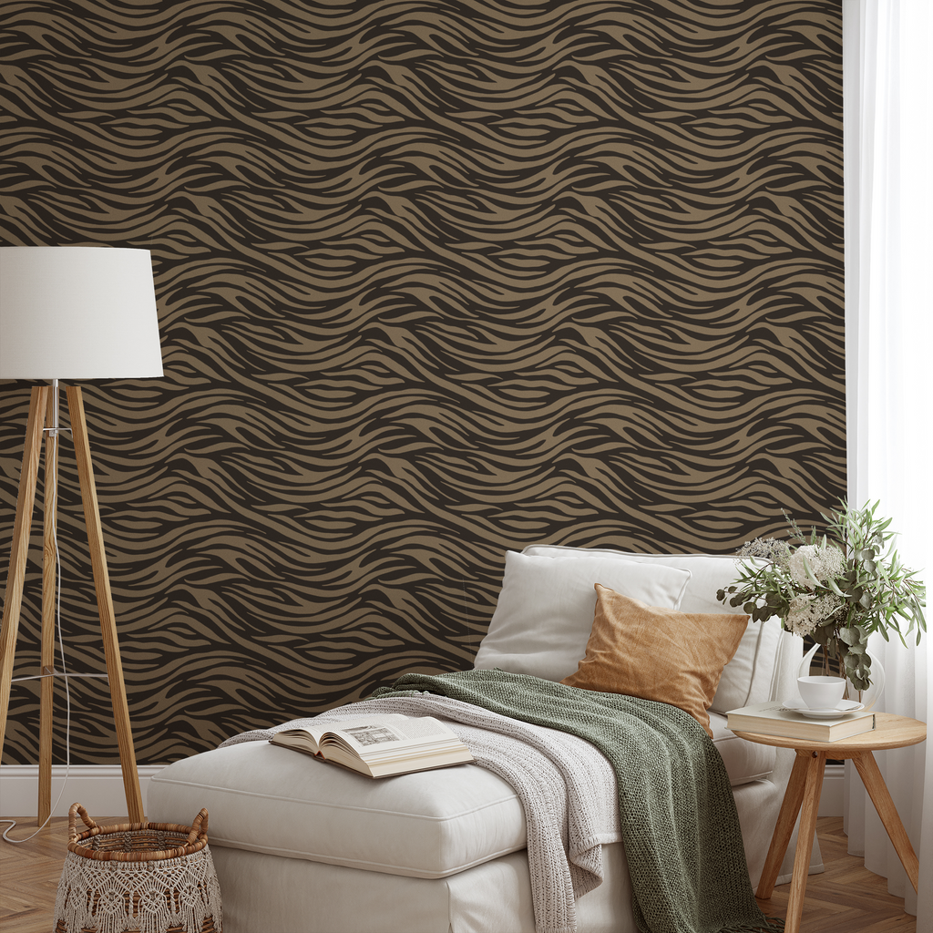 Sleek animal print zebra pattern in rich chocolate brown and tan. Perfect for fashion accessories or home decor with its timeless, safari-inspired design.