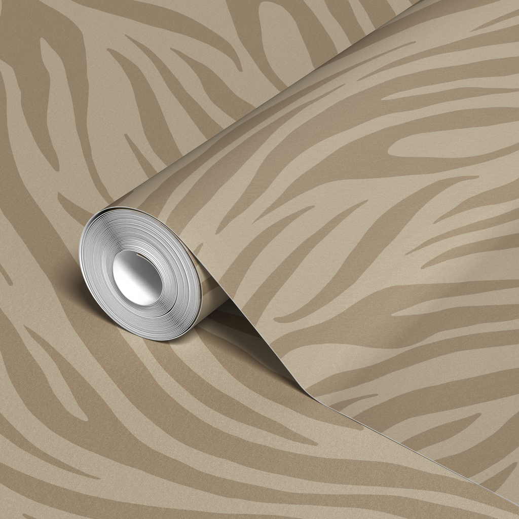 Elegant abstract wavy pattern in neutral beige and tan tones. Smooth flowing lines create a sophisticated textured appearance, perfect for upholstery, home decor, or modern interior design.