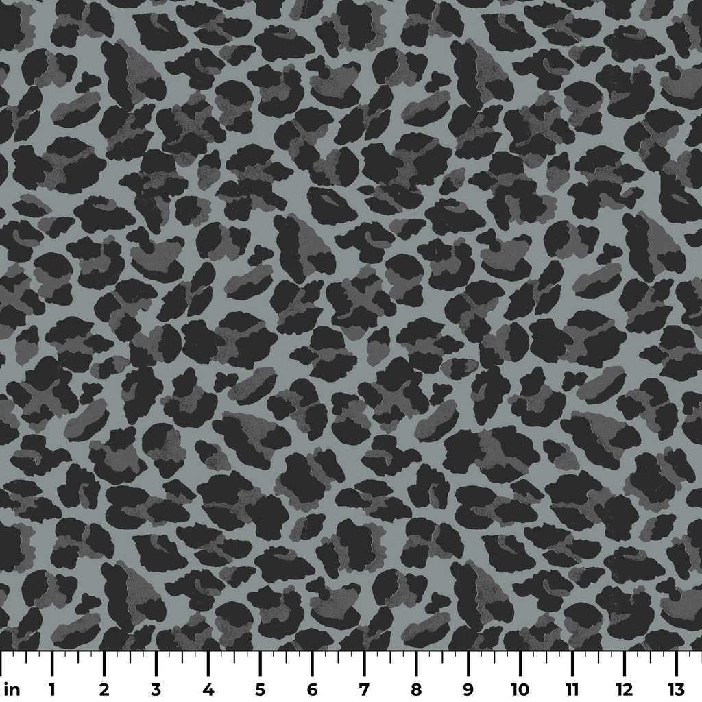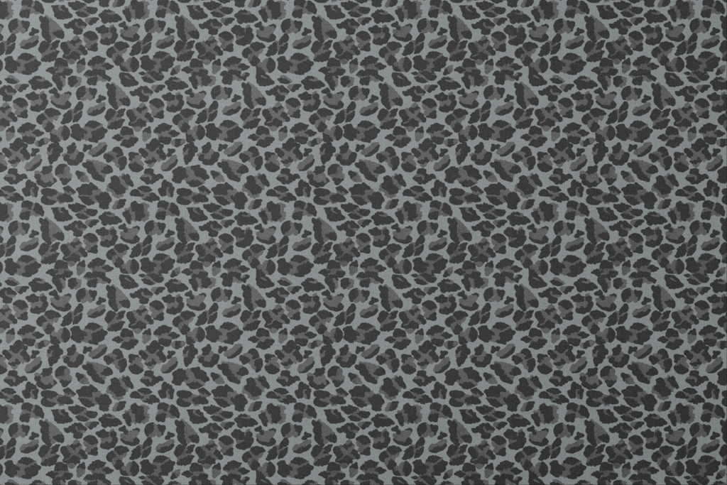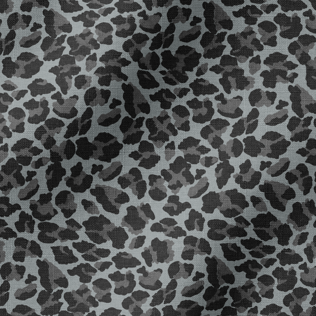Sleek and sophisticated gray animal print pattern featuring dark charcoal spots on a light gray background, perfect for fashion-forward home decor.