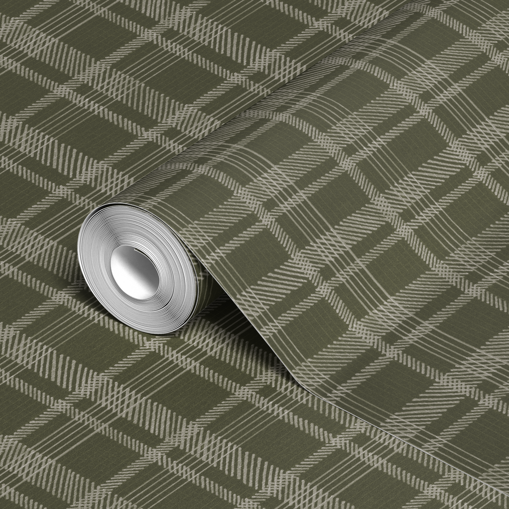 Sophisticated olive green plaid design features traditional herringbone details with a heritage appeal, perfect for home decor or upholstery in a classic, timeless aesthetic.