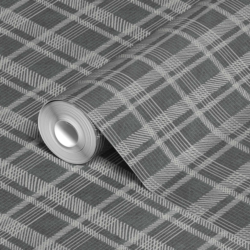 Classic gray and white plaid pattern featuring intersecting lines in a traditional tartan design, perfect for contemporary home decor with a timeless appeal.