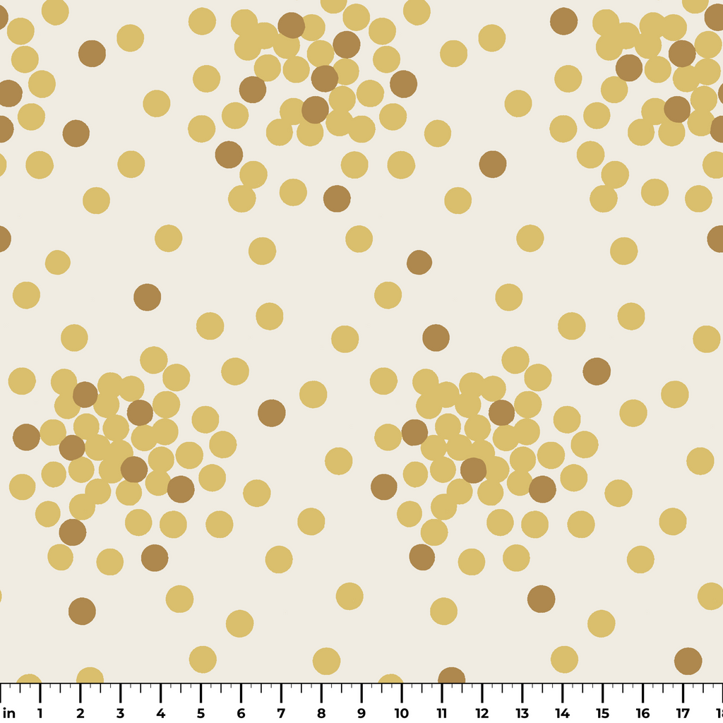 Elegante patrón de confeti dorado sobre fondo blanco, perfecto para decoraciones festivas, invitaciones de bodas o celebraciones especiales.