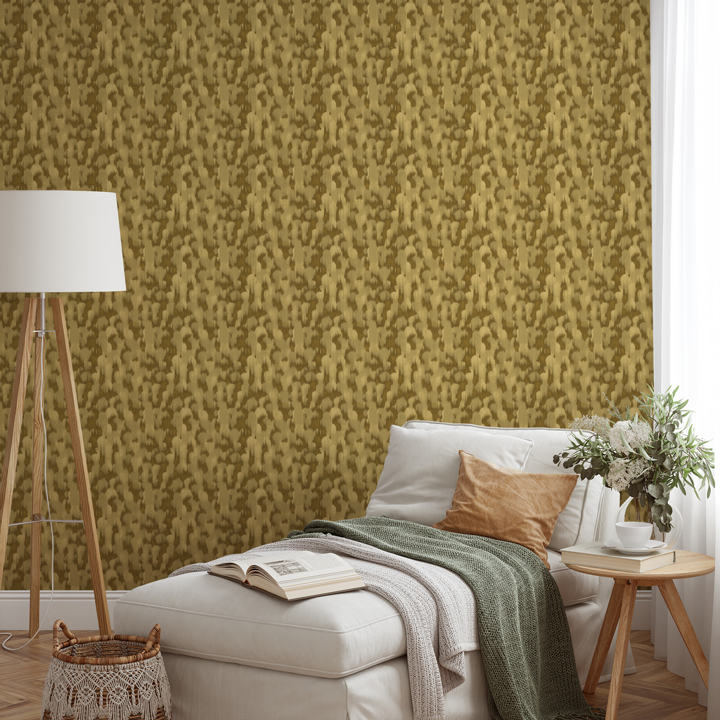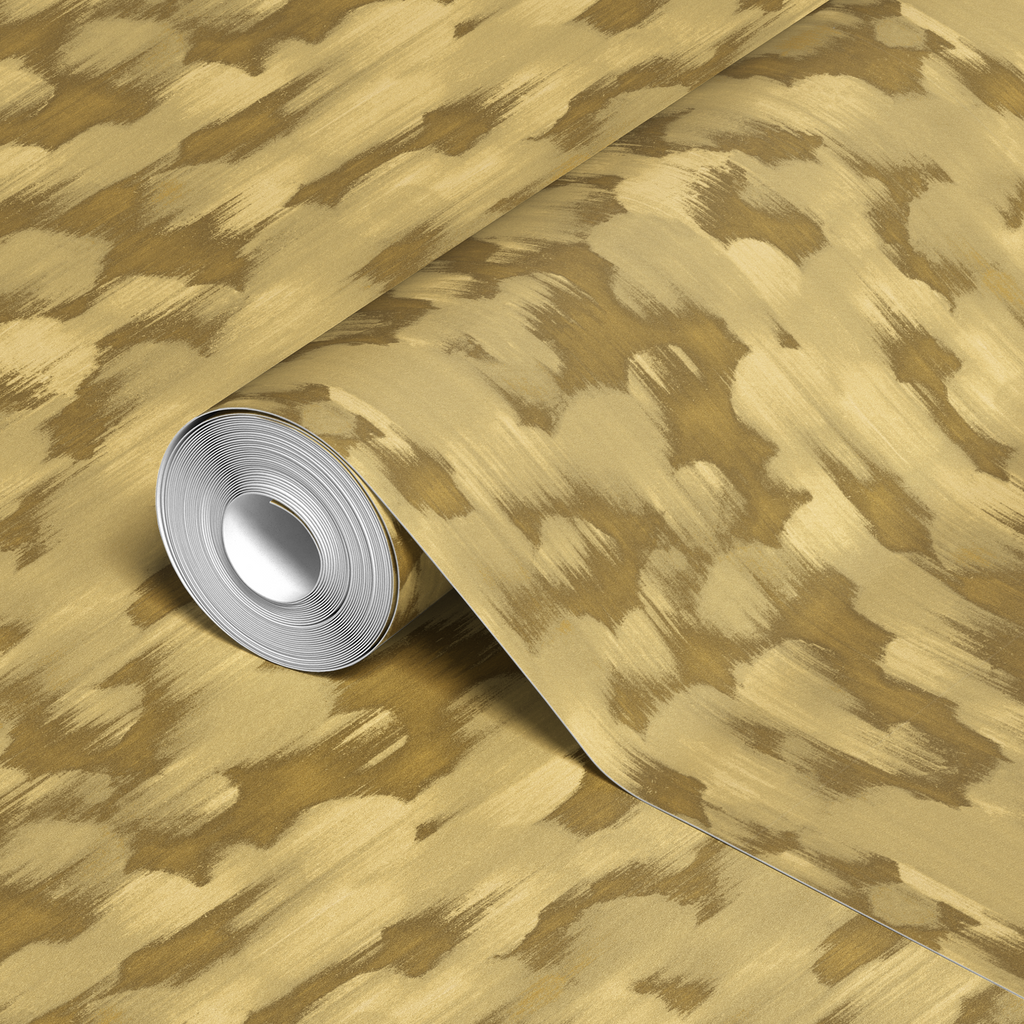 This elegant gold pattern features an abstract brushstroke design with rich amber and champagne tones, creating a luxurious textured appearance perfect for sophisticated home decor or fashion accessories.