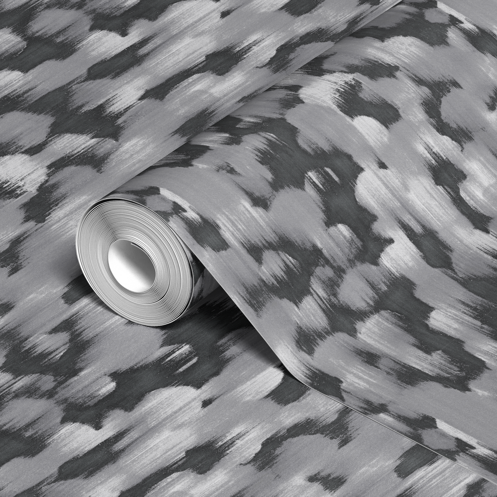 Abstract brushstroked pattern in versatile grayscale with textured, flowing lines creating a contemporary geometric design. Perfect for modern home decor or sophisticated apparel.