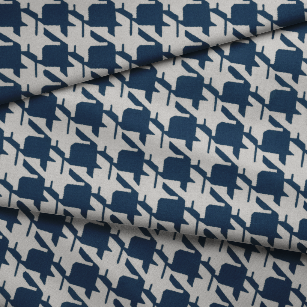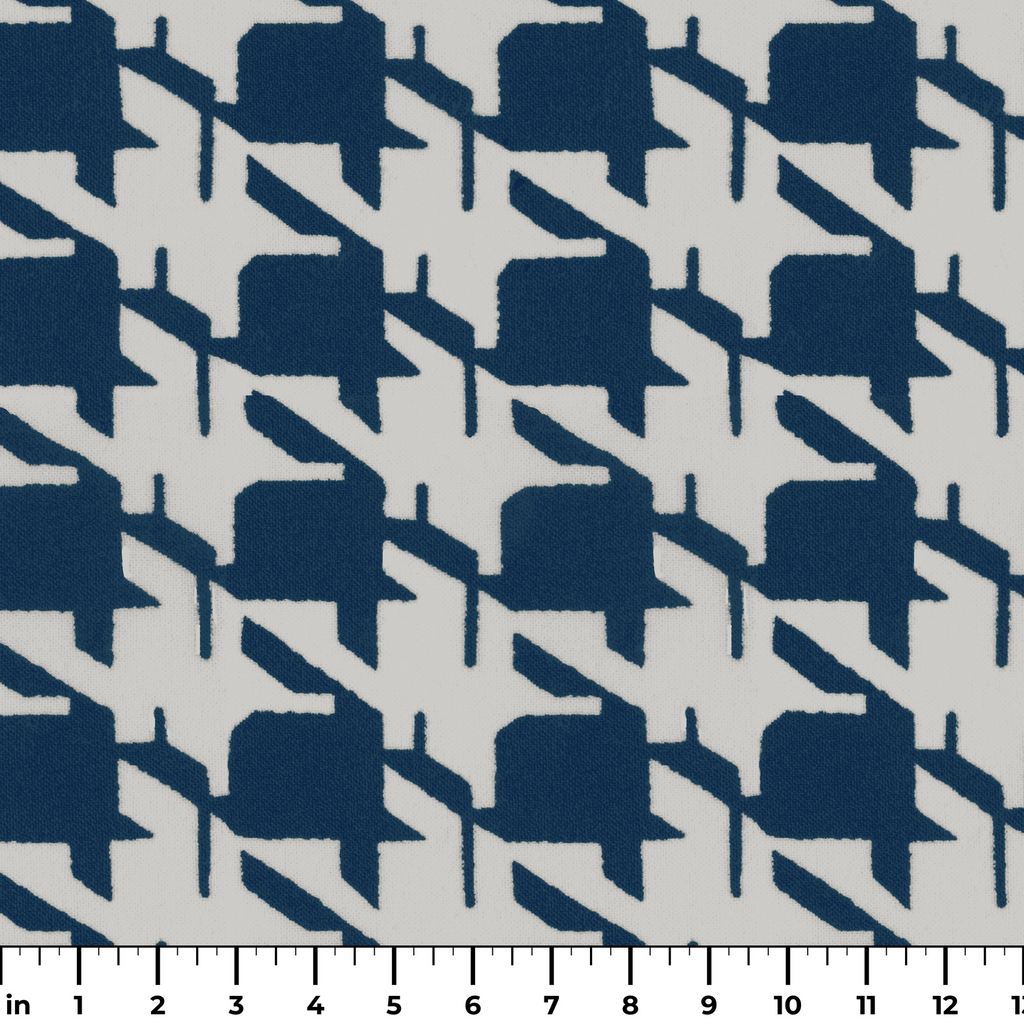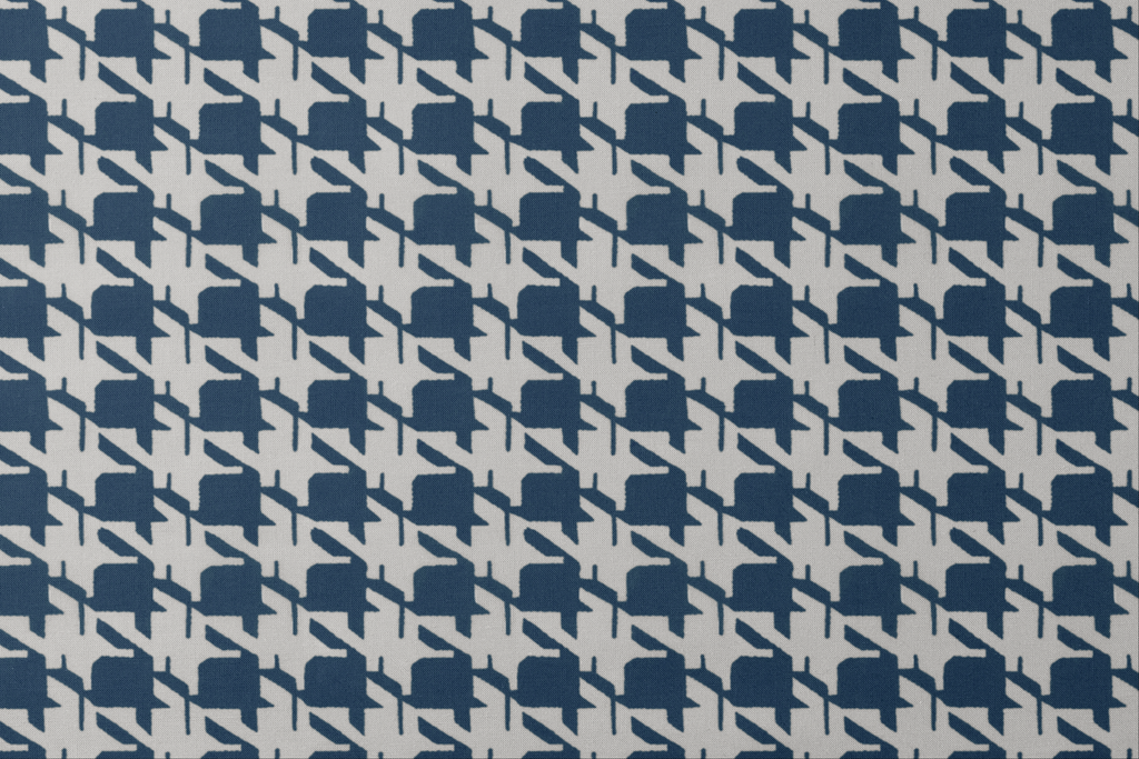 Bold navy and white geometric pattern featuring interlocking shapes with a contemporary yet retro vibe. Perfect for modern home decor with its striking contrast and rhythmic design.