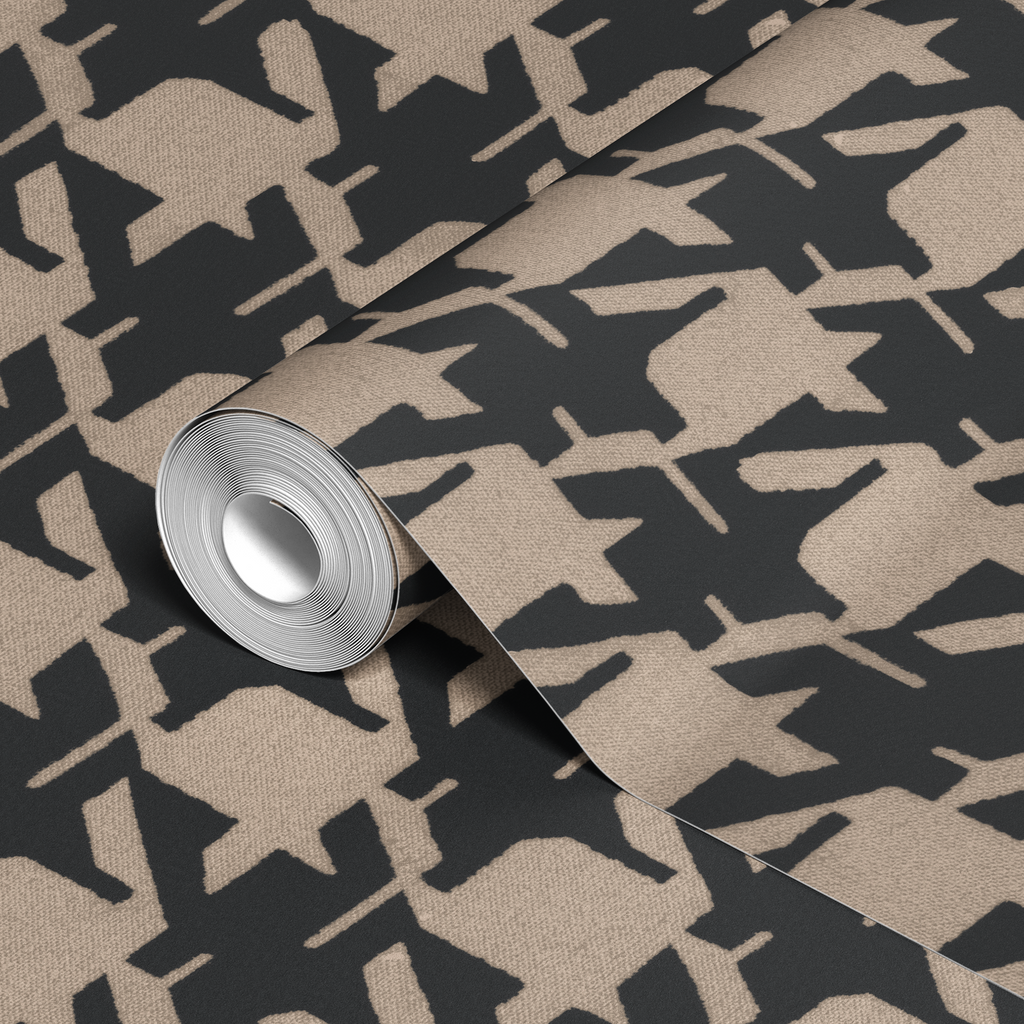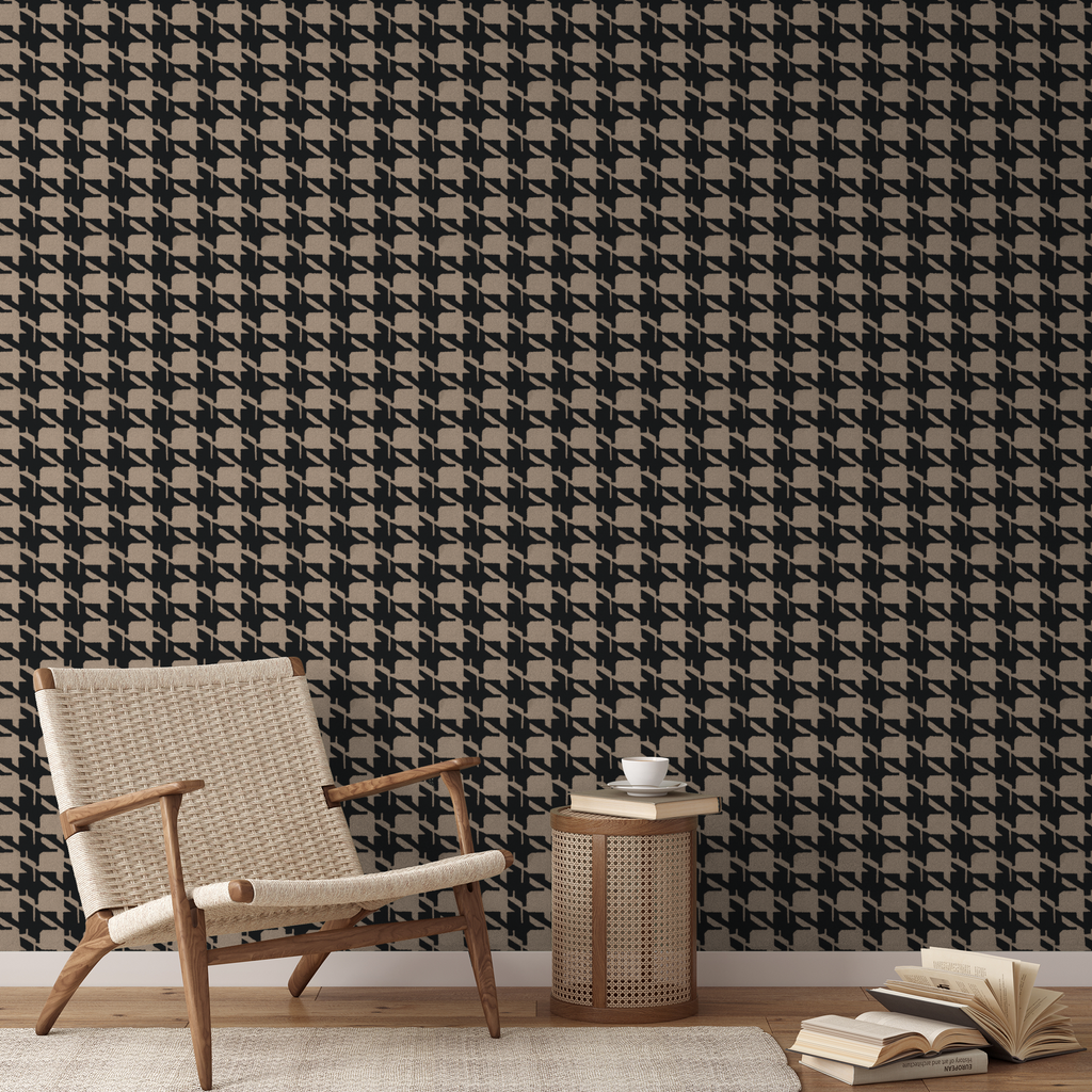 Striking geometric houndstooth pattern in black and beige creates a sophisticated contemporary design with classic heritage appeal. Perfect for home decor or upholstery with its timeless yet modern aesthetic.