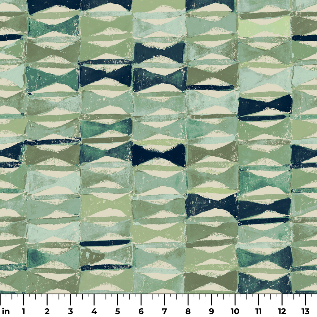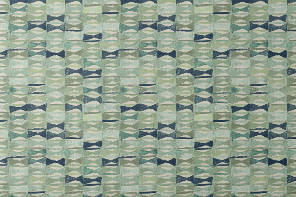 A mid-century geometric pattern featuring diamond shapes in a harmonious palette of teal, sage green, navy, and cream creates a retro-inspired design.