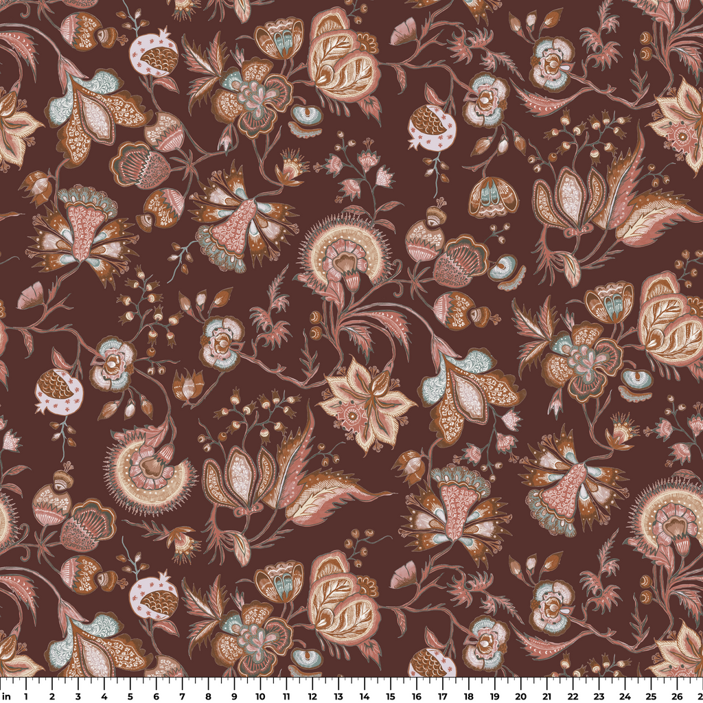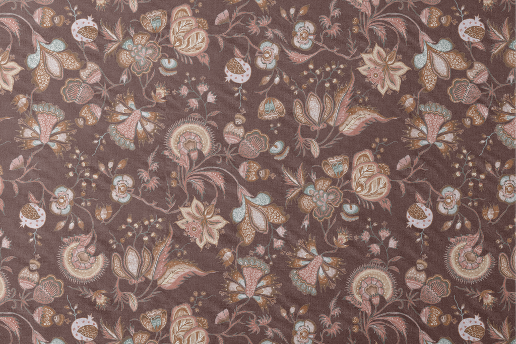 Elegant vintage floral pattern featuring intricate paisley motifs in pink on a red background, perfect for a classic room style with a timeless botanical appeal.