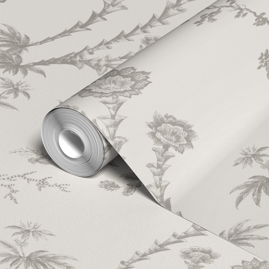 Transform your space with this elegant Asian-inspired toile pattern in soft tan on cream. Featuring tropical palm trees, pagodas, and delicate scenery for a classic cultural style.