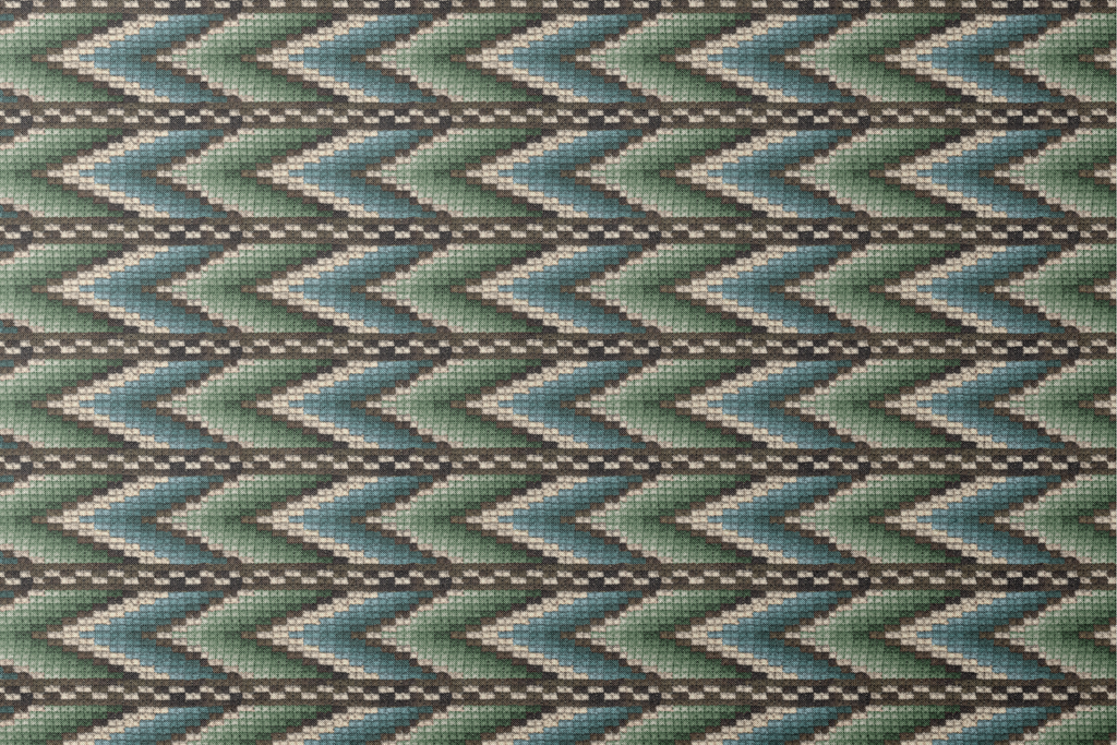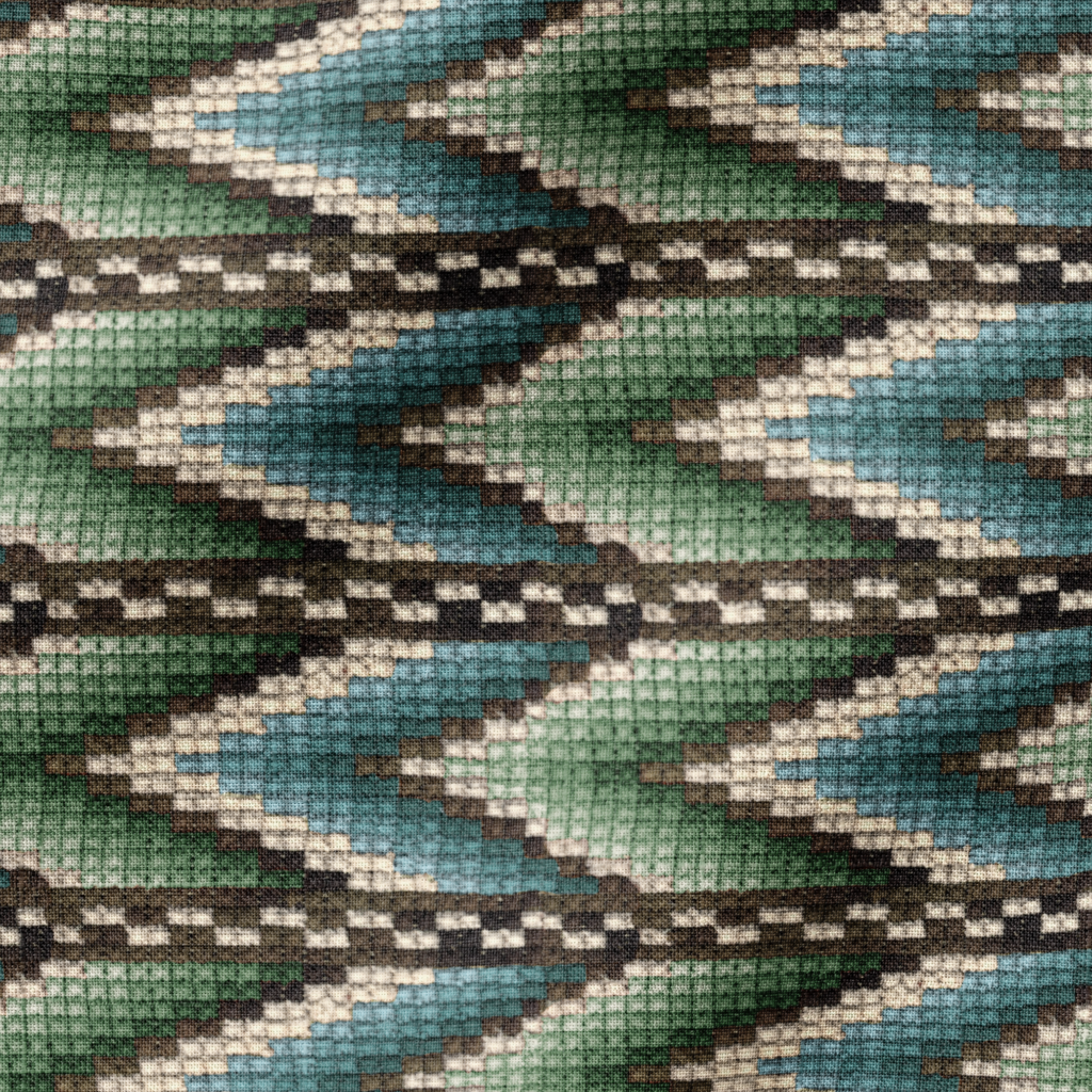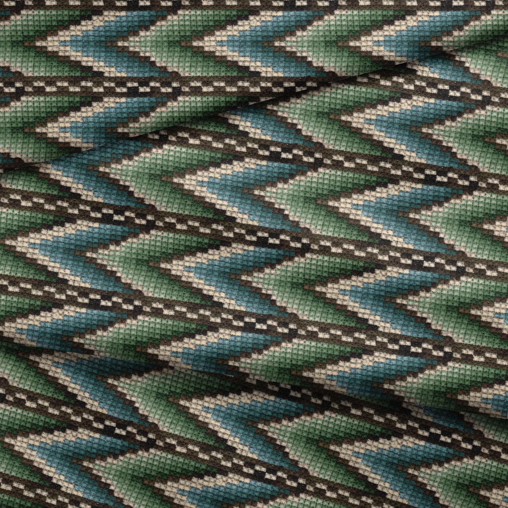 Southwestern geometric design in tones of blue, green, and brown with a traditional zigzag pattern, perfect for a heritage-inspired aesthetic.