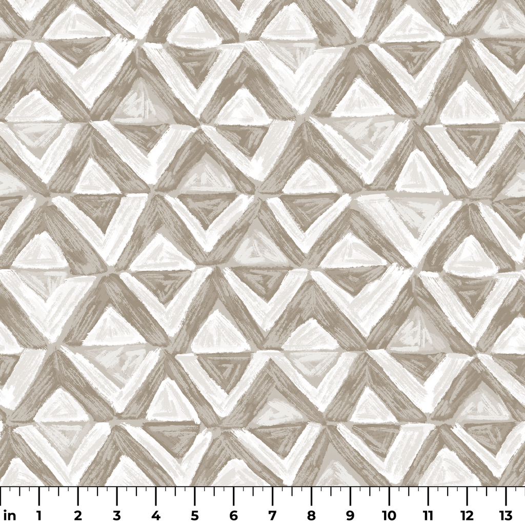 This sophisticated geometric pattern features taupe triangles arranged in a repeating tessellation design, creating an elegant texture with subtle shading and a contemporary minimalist aesthetic.