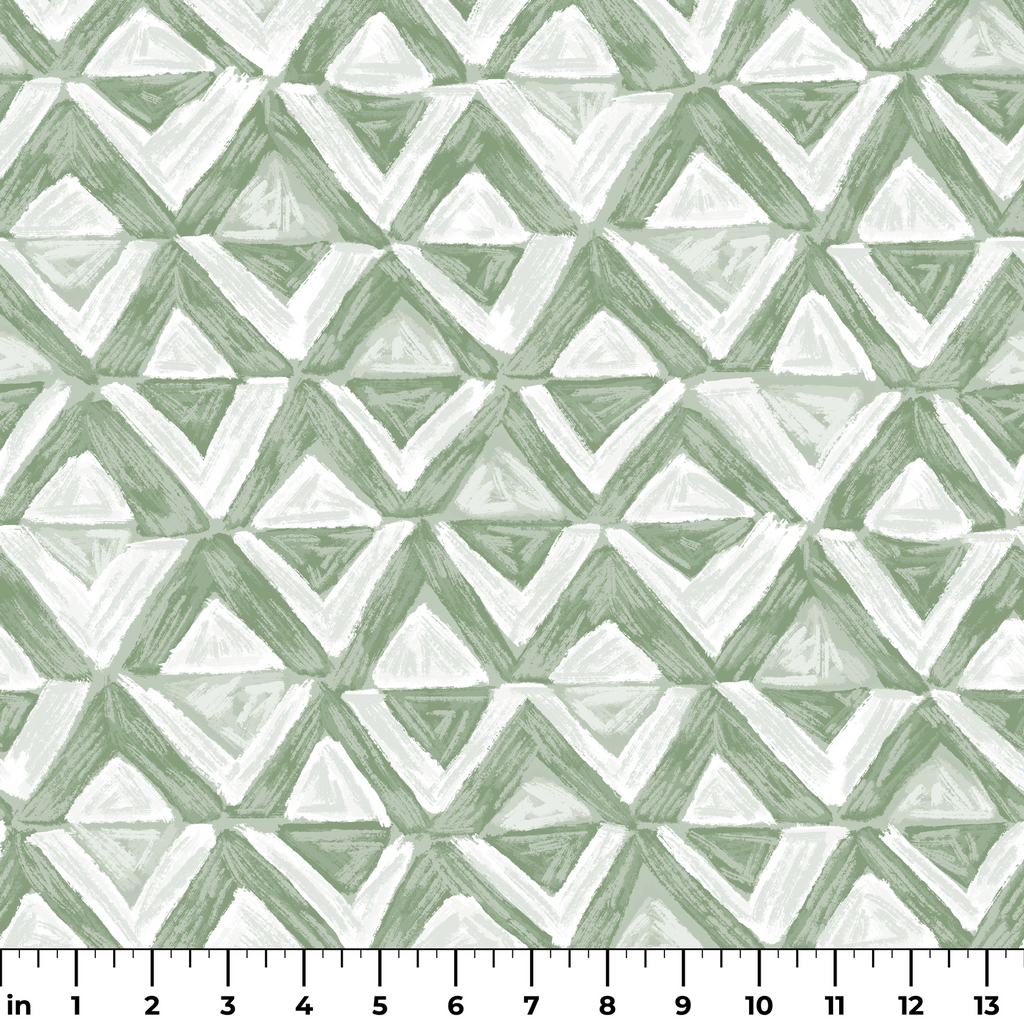 This sophisticated geometric pattern features soft sage green triangles arranged in a repeating tessellation design, creating an elegant texture with subtle shading and a contemporary minimalist aesthetic.