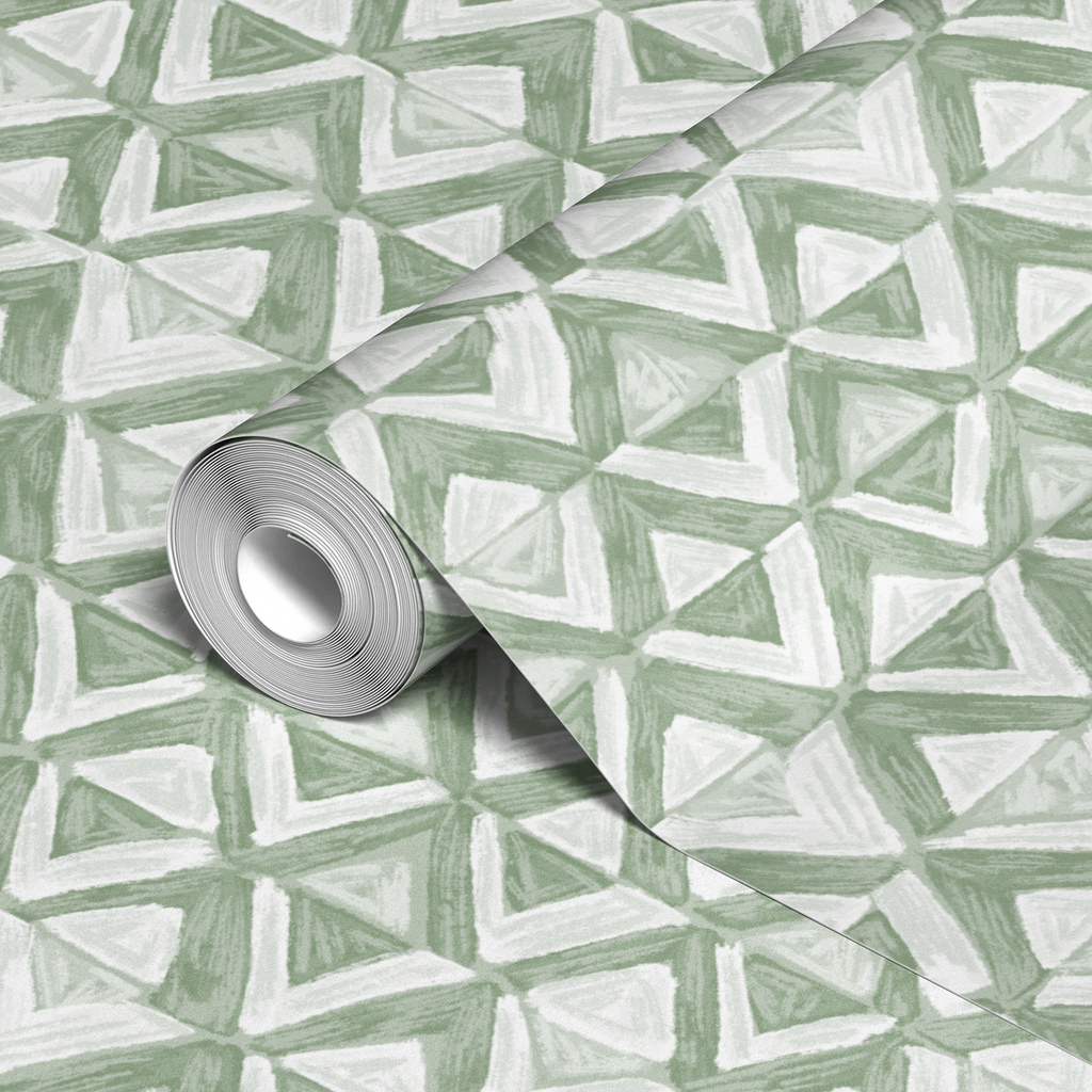This sophisticated geometric pattern features soft sage green triangles arranged in a repeating tessellation design, creating an elegant texture with subtle shading and a contemporary minimalist aesthetic.