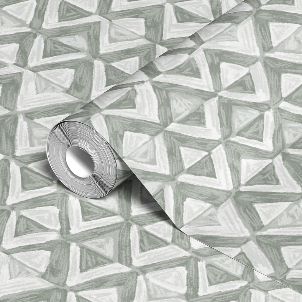 This sophisticated geometric pattern features soft gray and white triangles arranged in a repeating tessellation design, creating an elegant texture with subtle shading and a contemporary minimalist aesthetic.