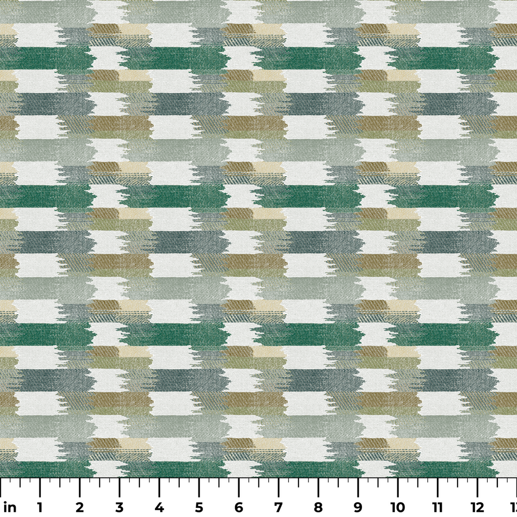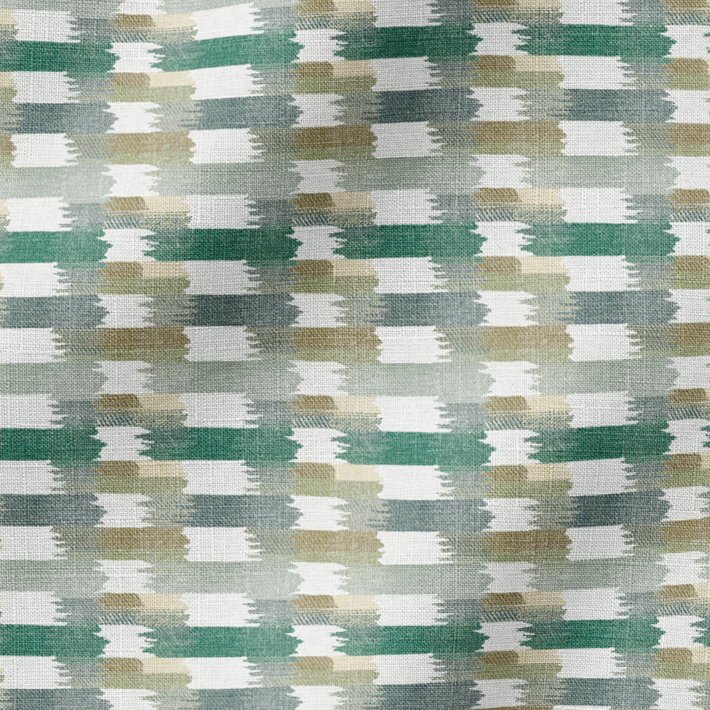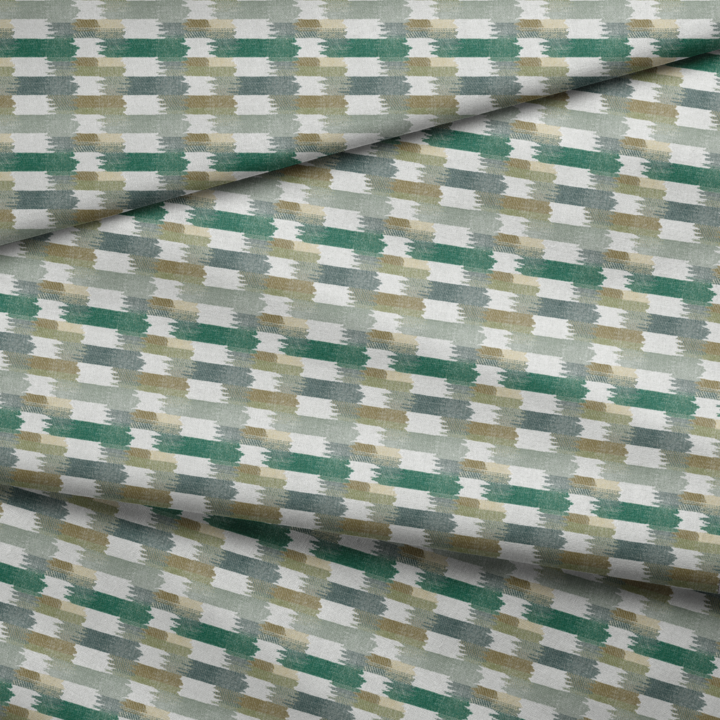 Contemporary textured fabric with brushstroke pattern in muted tones of green, gray, and beige, creating an elegant abstract design perfect for modern home decor.