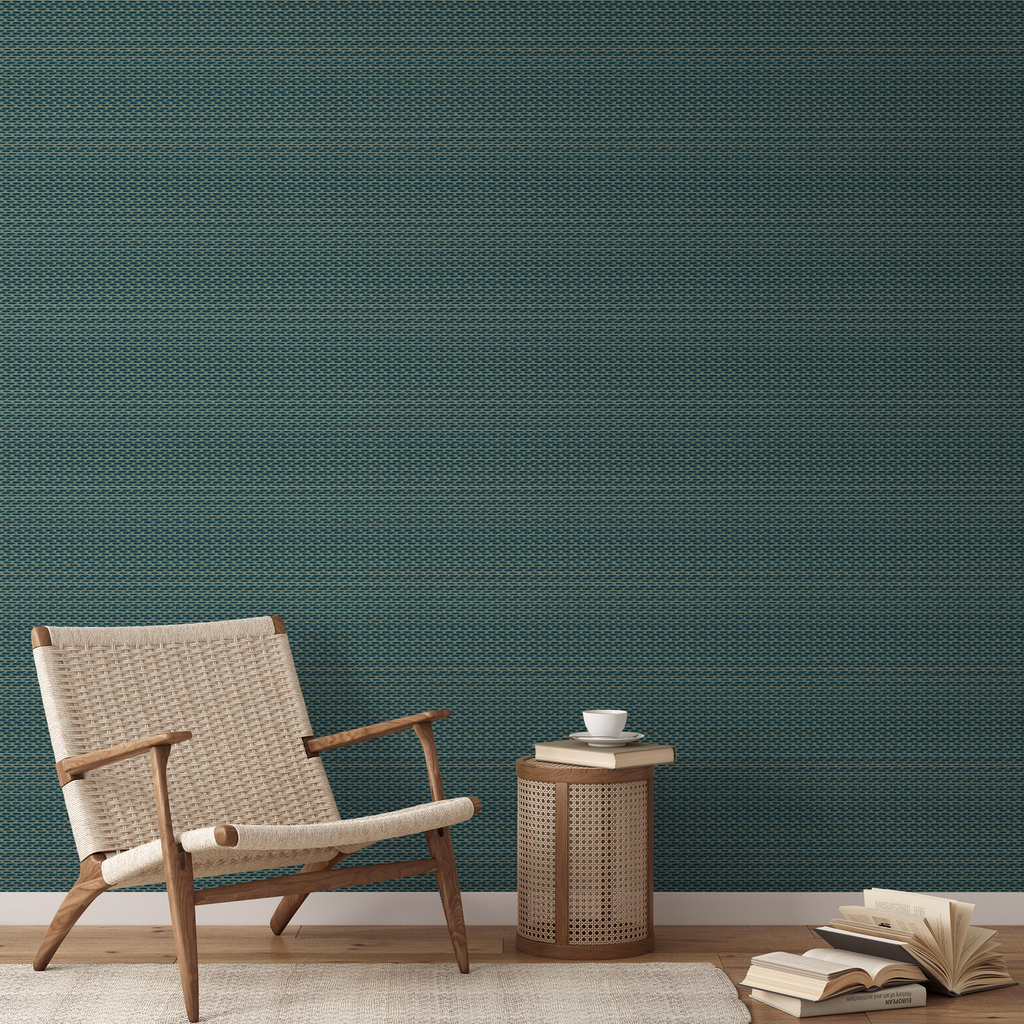 Abstract pattern featuring horizontal bands of teal and green with delicate cream dotted lines, perfect for creating a contemporary aesthetic in any space.