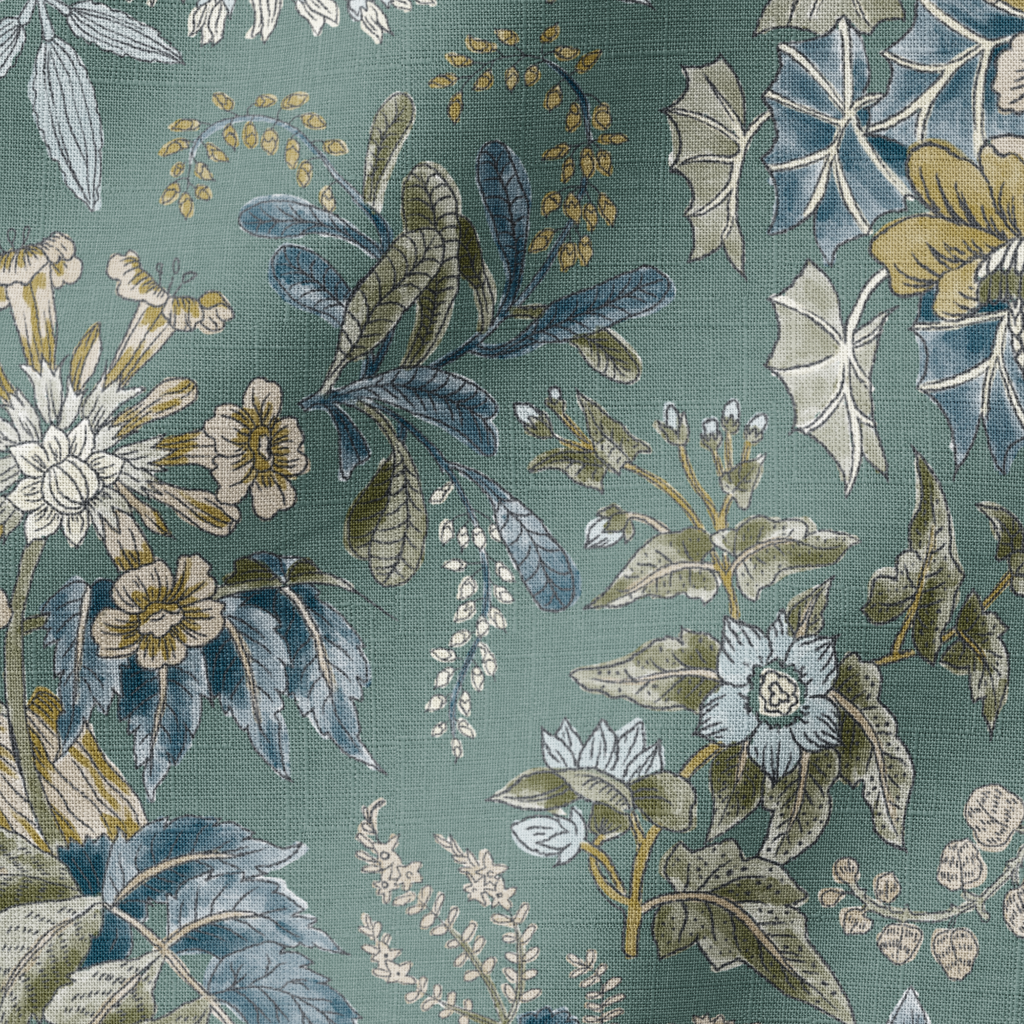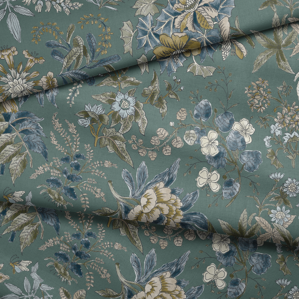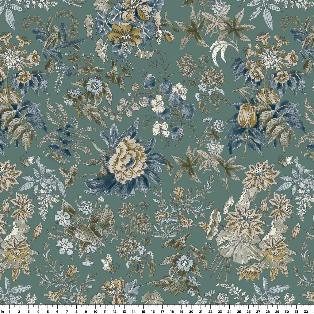 Embrace the elegance of botanical beauty in any space with this vintage-inspired floral pattern featuring delicate blooms and foliage against a sophisticated sage green background.