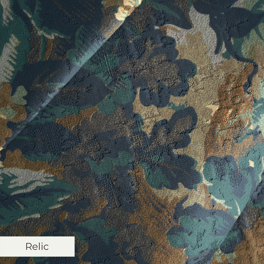 A luxurious jacquard upholstery fabric with an abstract distressed pattern in soft, elegant tones and subtle sheen. Relic brings timeless sophistication and versatile styling across traditional and contemporary interiors.
