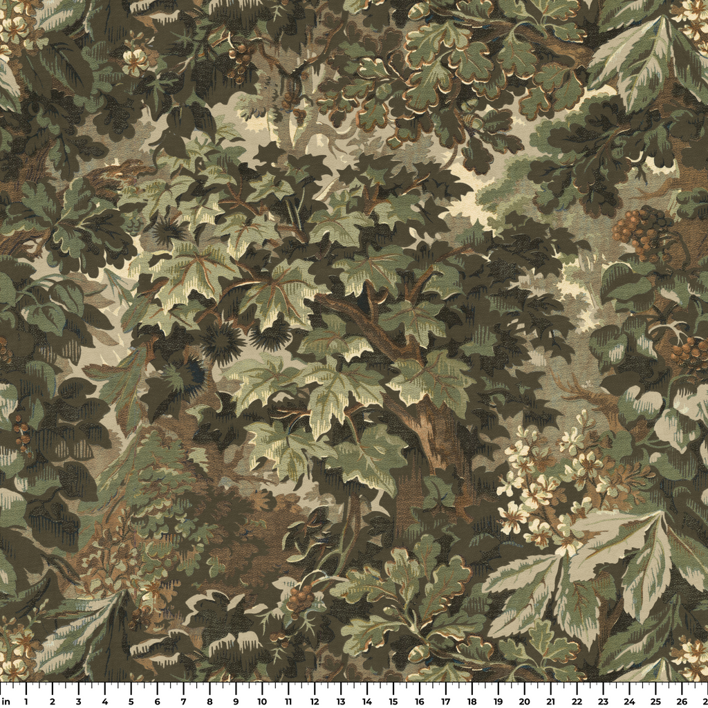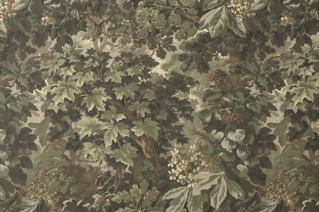 Papel pintado decorativo con motivo de hojas verdes y tonos naturales, perfecto para crear ambientes serenos y elegantes en interiores con estilo botánico.