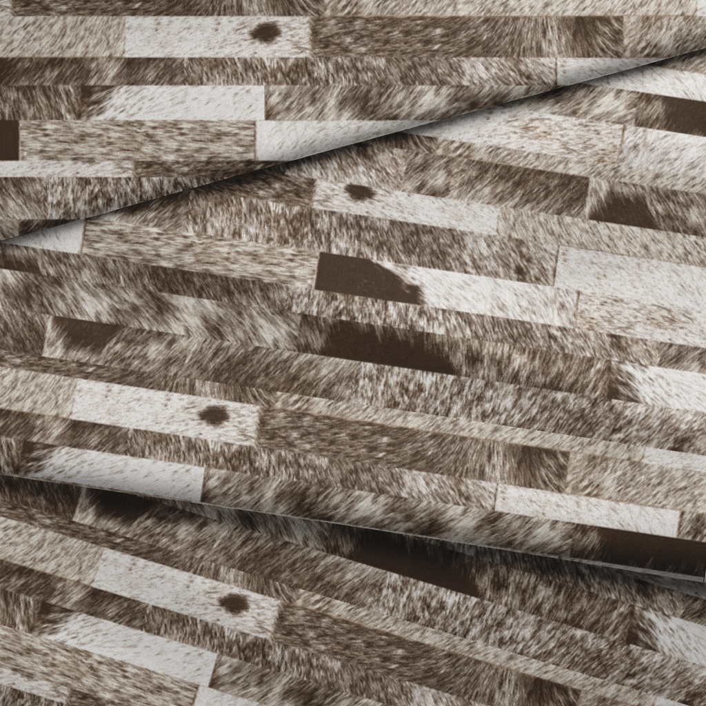 Sophisticated cowhide pattern with textured horizontal stripe design, creates a contemporary twist on traditional animal print.