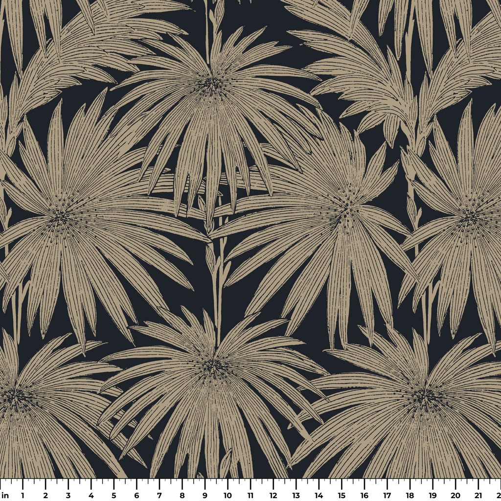 Elegant botanical pattern featuring large daisy-like flowers against a solid background. Perfect for contemporary decor with a touch of retro charm.