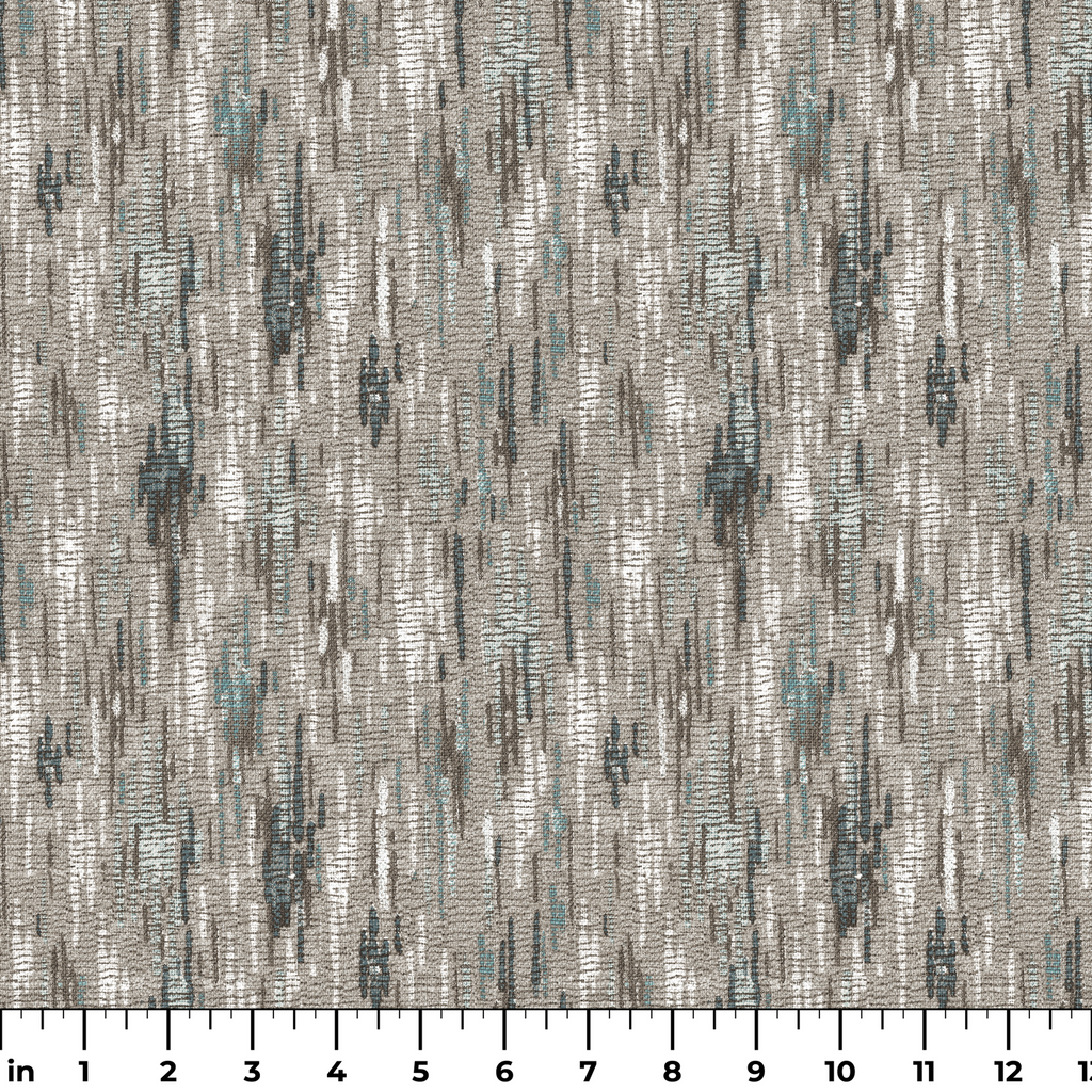 Textured abstract design in grey and teal tones with a distressed vertical pattern, creating a sophisticated contemporary look for modern interiors.