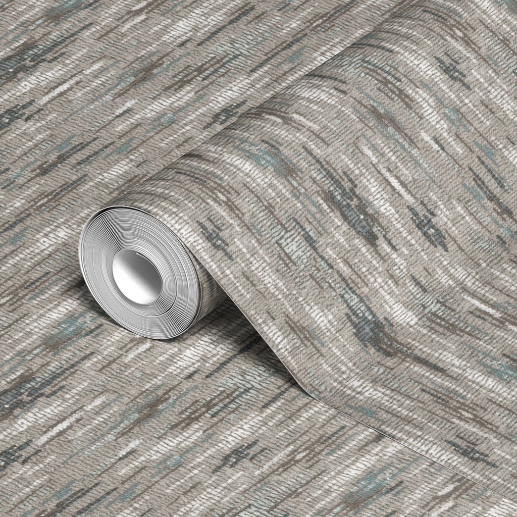 Textured abstract design in grey and teal tones with a distressed vertical pattern, creating a sophisticated contemporary look for modern interiors.