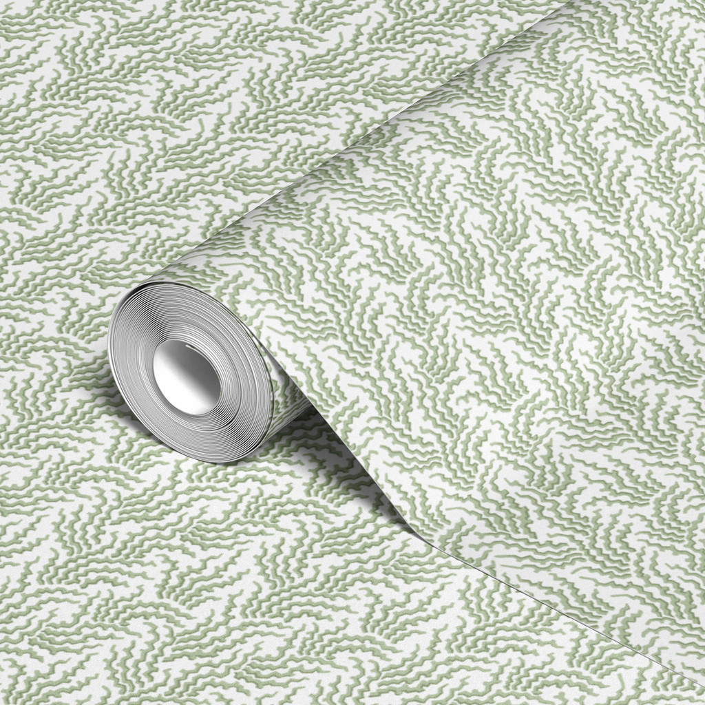 Delicate sage green botanical pattern featuring graceful fern-like shapes on a white background. Perfect for an elegant home look with a natural, organic aesthetic.