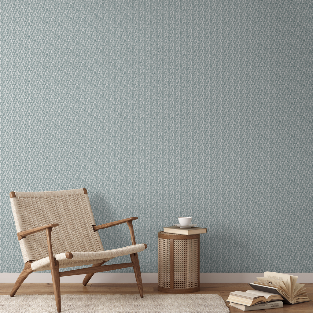 Delicate pale blue botanical pattern featuring graceful fern-like shapes on a white background. Perfect for an elegant home look with a natural, organic aesthetic.