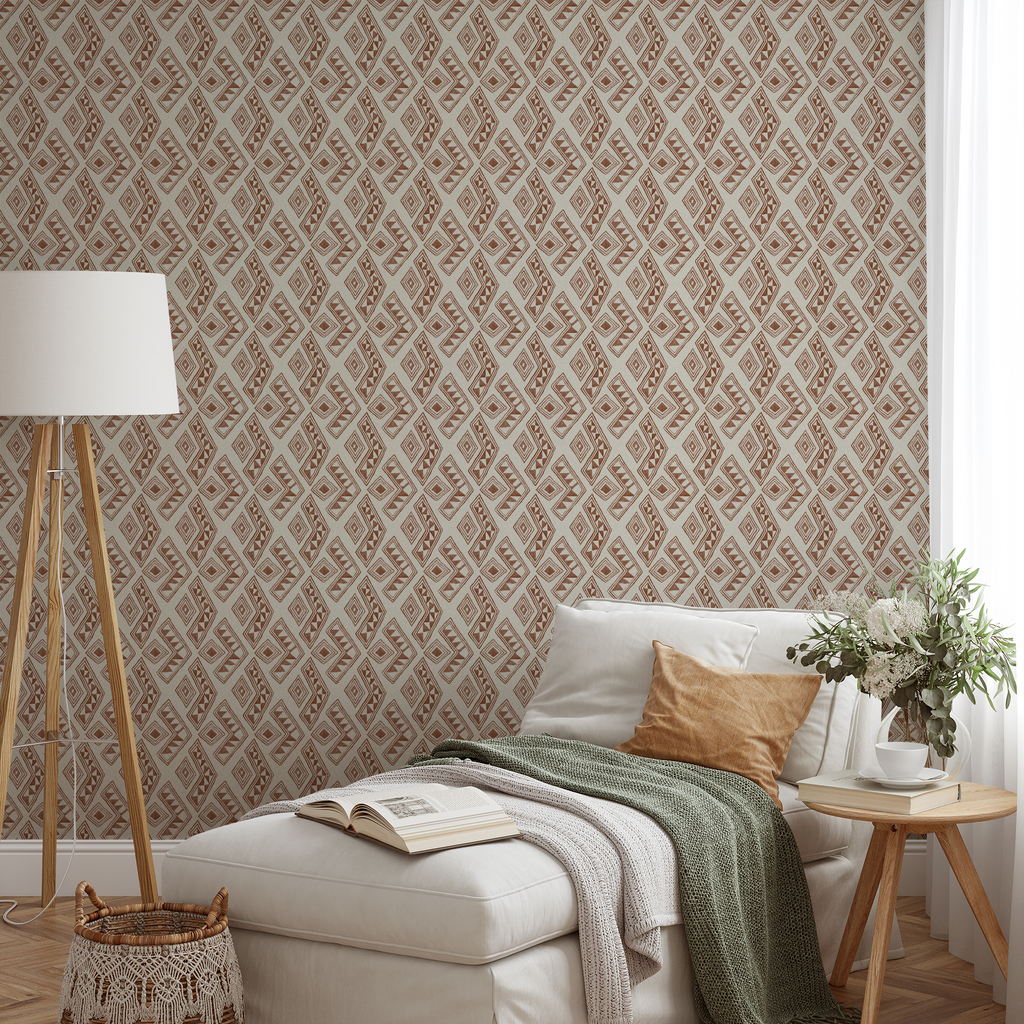 Bold geometric tribal pattern featuring diamond shapes and triangles. Perfect for contemporary decor with a sophisticated ethnic touch.