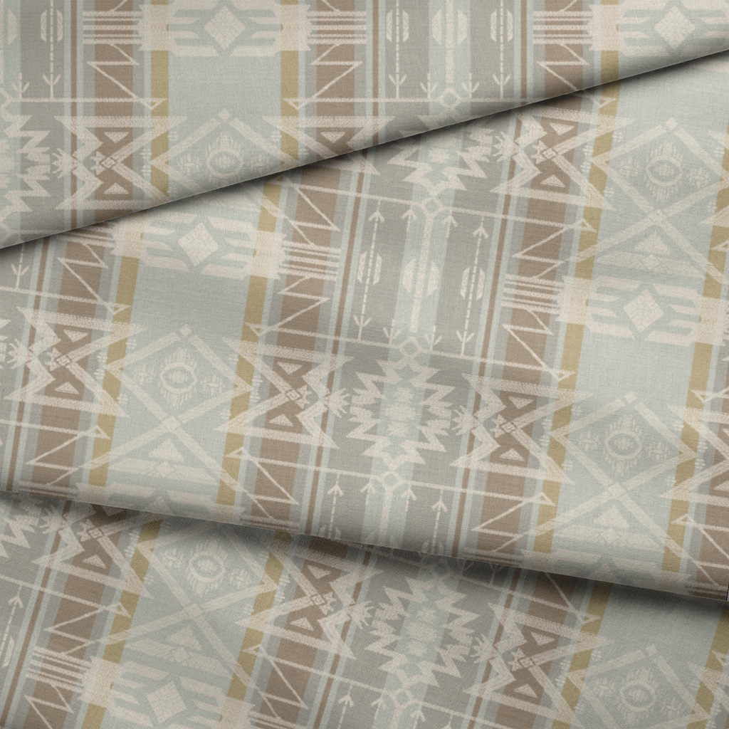 Elegant southwestern inspired pattern featuring geometric motifs and arrow designs in a sophisticated neutral palette - perfect for contemporary decor with a cultural heritage influence.