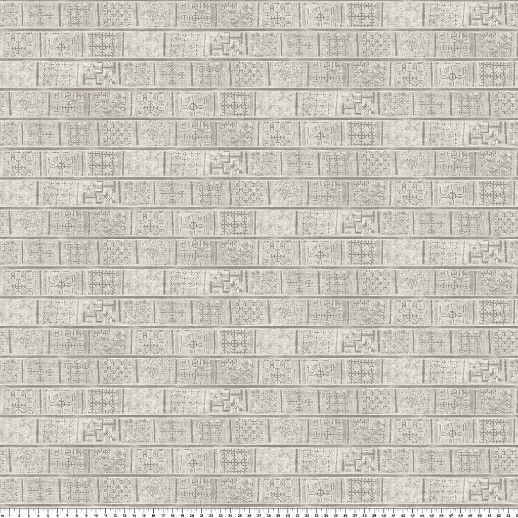 Subtle geometric pattern on a light gray brick wall featuring intricate mosaic-like designs. This contemporary architectural texture creates an elegant vibe for modern spaces.