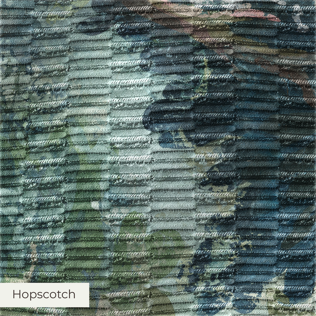 A bold, playful upholstery fabric with raised rectangular accents and subtle sheen. Hopscotch offers a modern architectural feel. Its tactile surface, durability, and design selection make it ideal for statement home decor pieces.