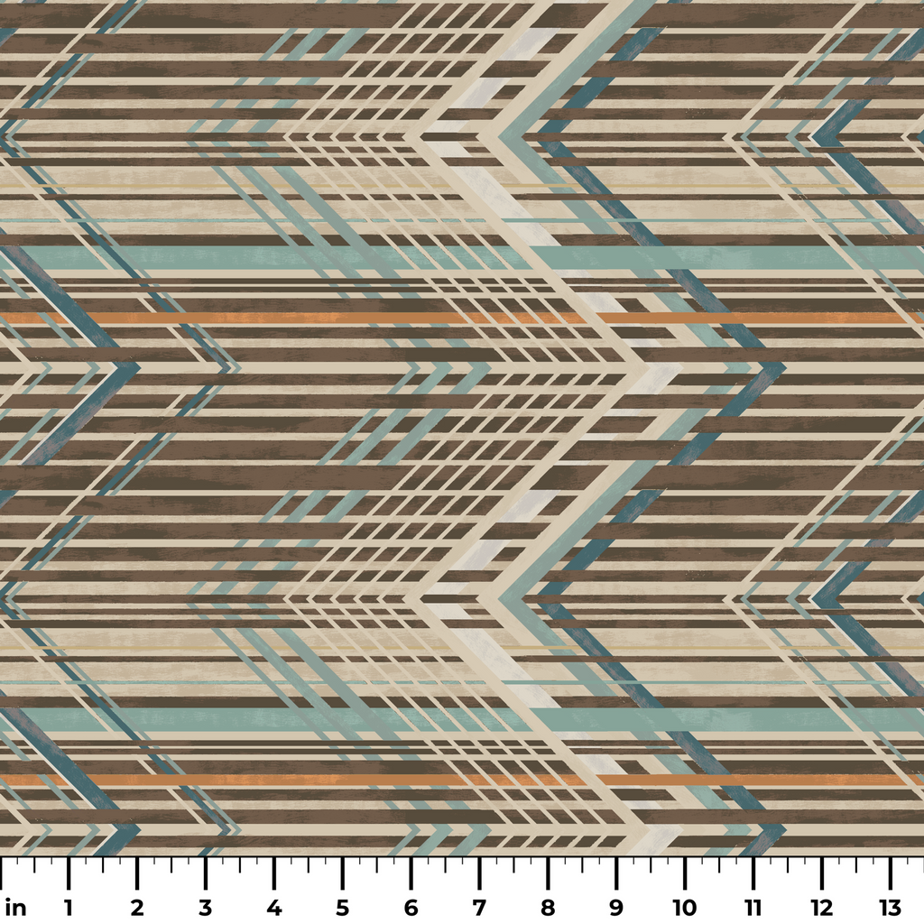 Geometric angular pattern with chevron motifs and linear stripes creating a modern yet retro aesthetic, perfect for contemporary decor.