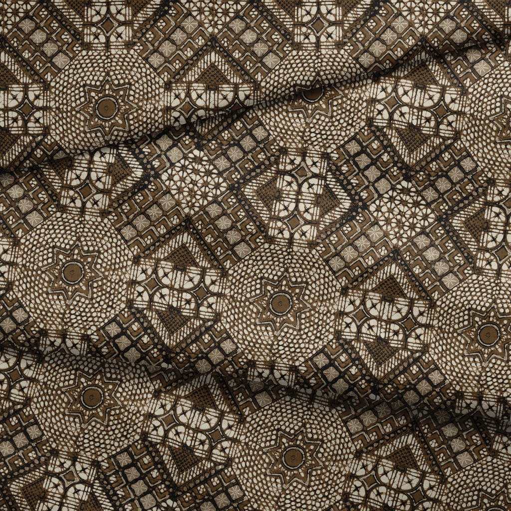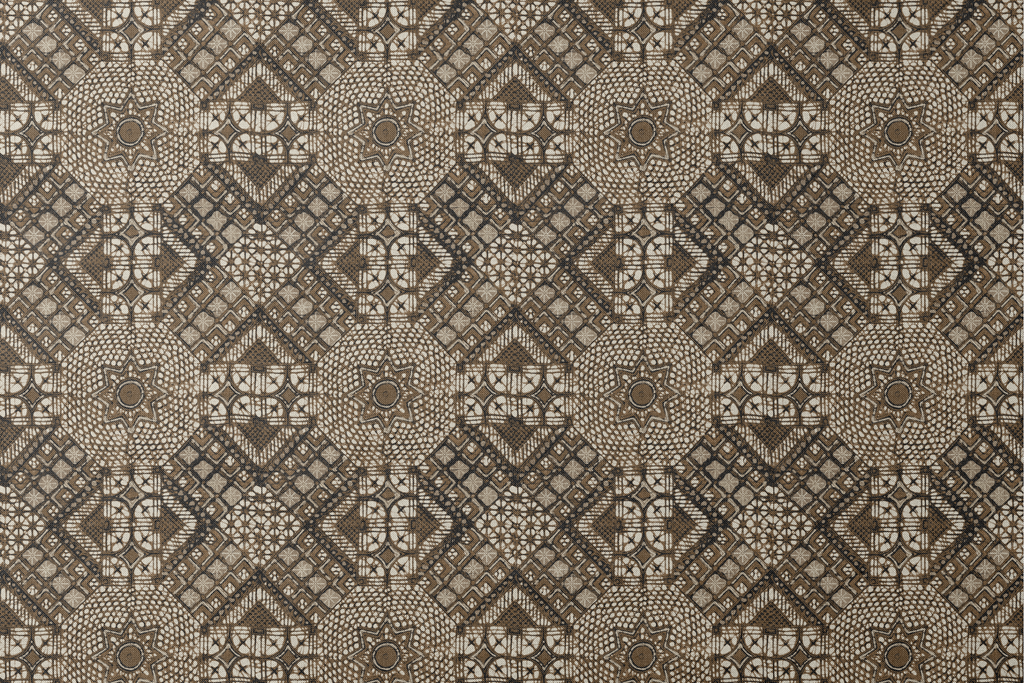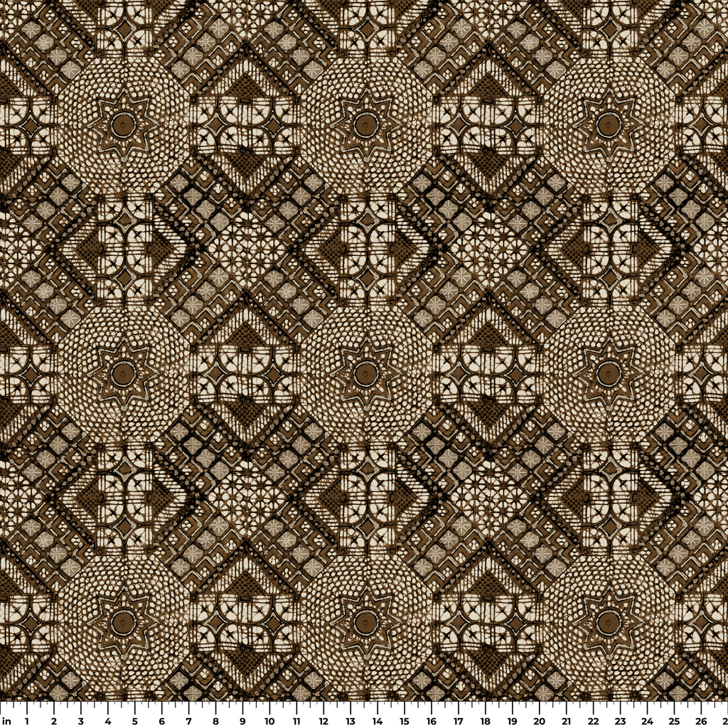 Elegant geometric mosaic pattern in brown and beige featuring intricate medallions and lattice designs with a traditional heritage feel.