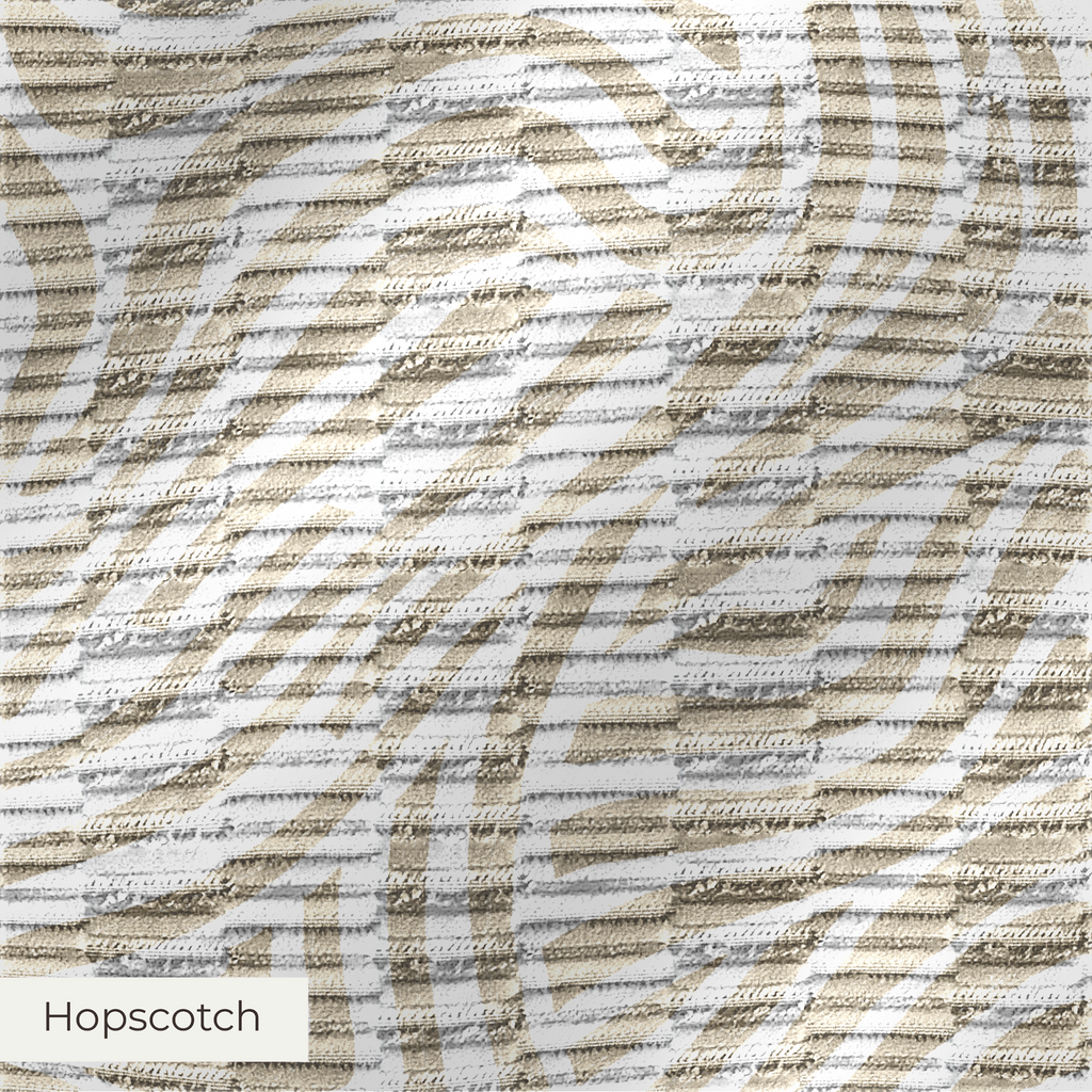 A bold, playful upholstery fabric with raised rectangular accents and subtle sheen. Hopscotch offers a modern architectural feel. Its tactile surface, durability, and design selection make it ideal for statement home decor pieces.