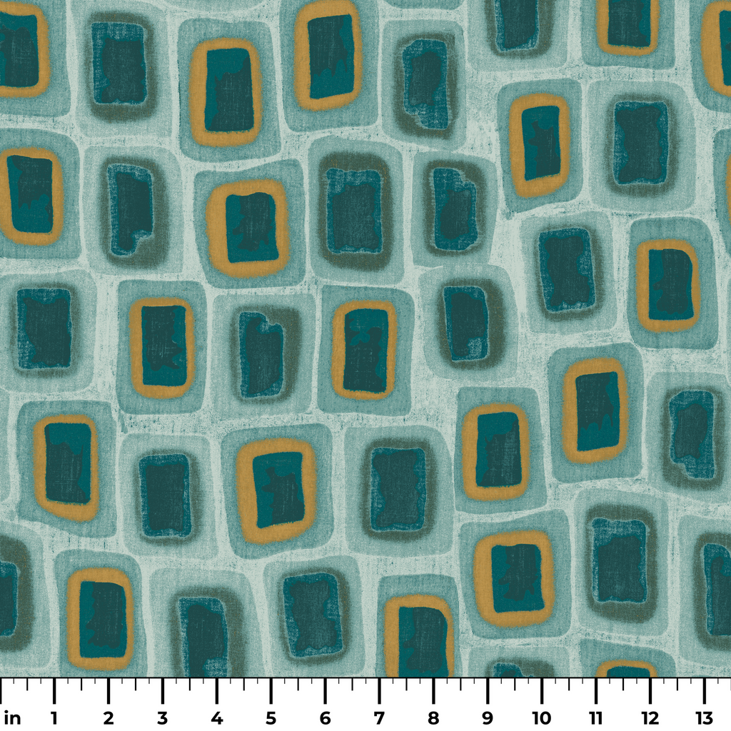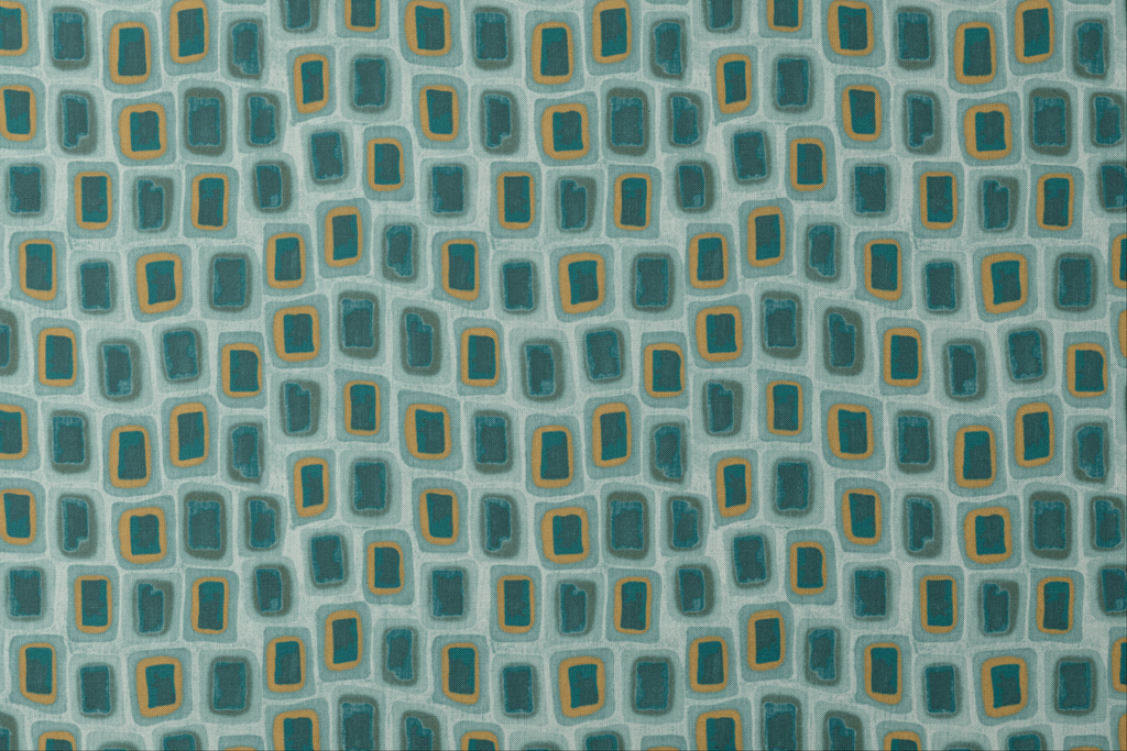 Mid-century modern design featuring teal and mustard rectangular shapes on a soft aqua background, perfect for retro-inspired aesthetics.