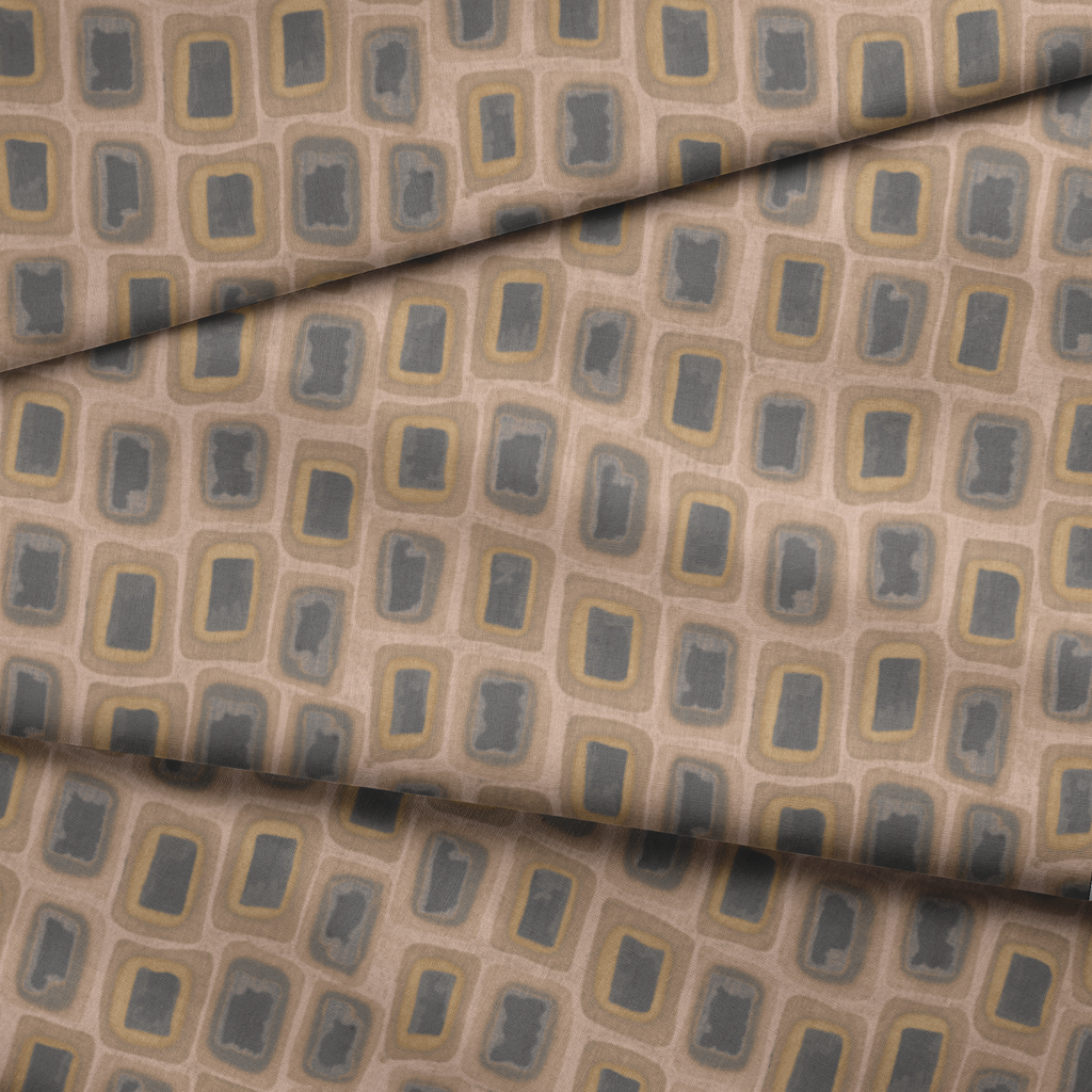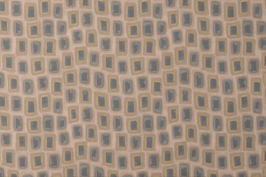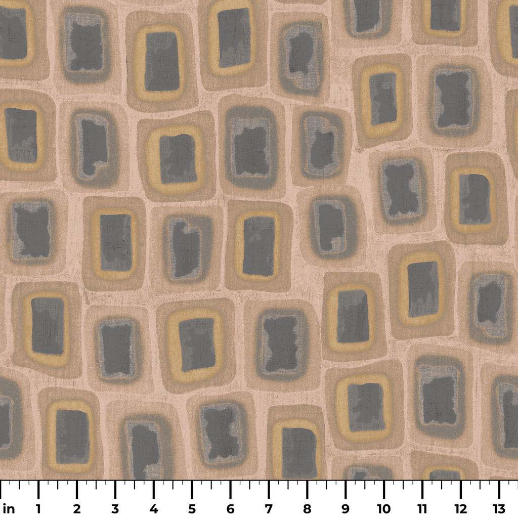 Mid-century modern pattern featuring brown and grey-blue rectangular shapes on a soft tan background, perfect for retro-inspired aesthetics.
